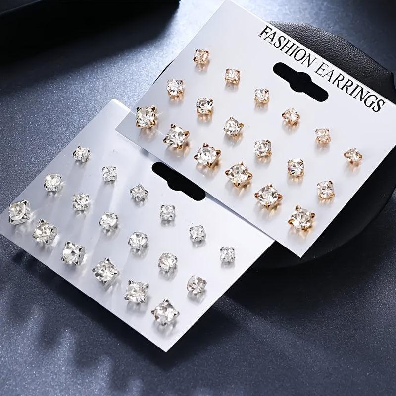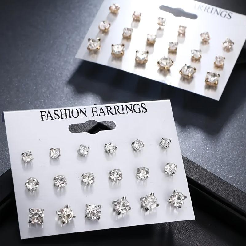 These classic stud earrings are perfect for daily wear with their elegant rhinestone decoration and minimalist design.