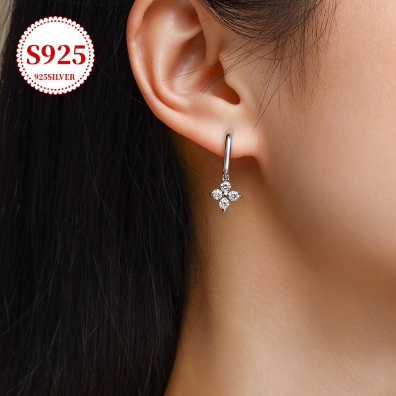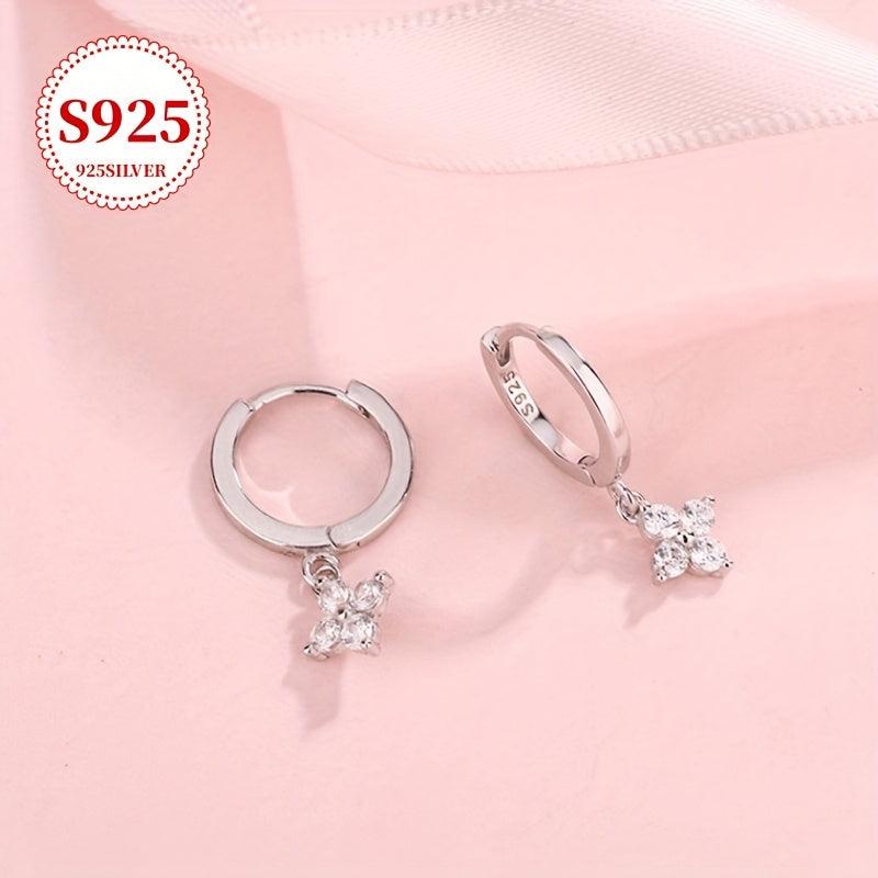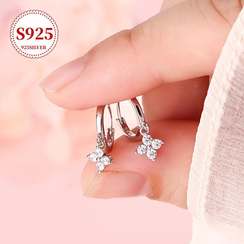 Chic and delicate floral hoop earrings crafted from 925 silver. Fashionable light studs with decorative accessories. Comes with anti-oxidation storage for lasting brilliance.