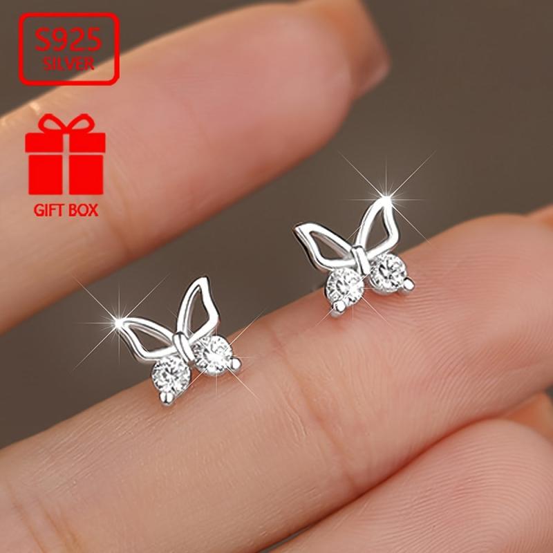 Elegant and versatile 925 pure silver earrings with hollow butterfly design and synthetic zirconia. Perfect for everyday wear or special occasions.