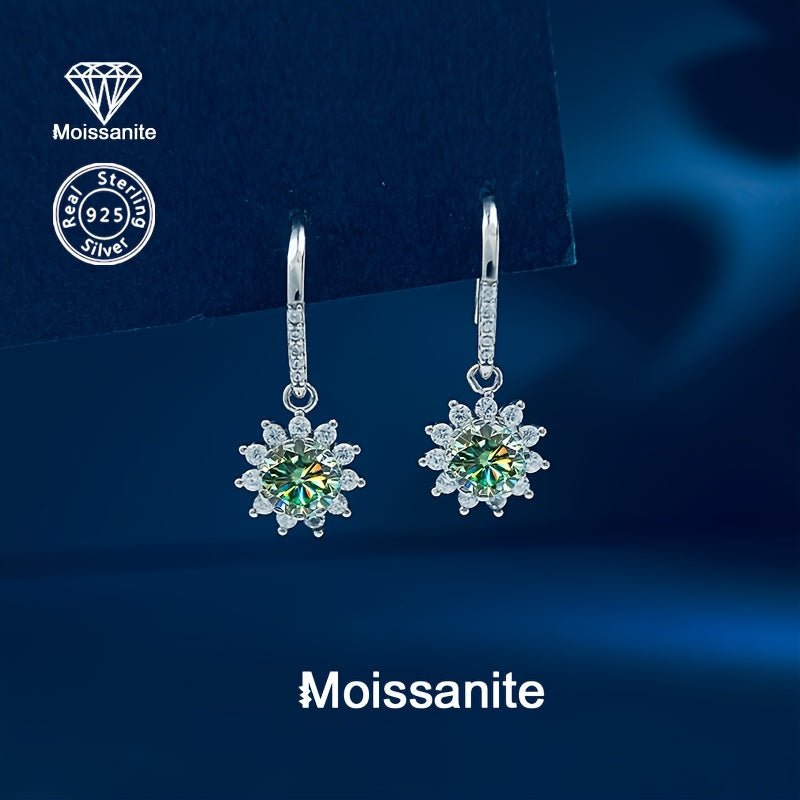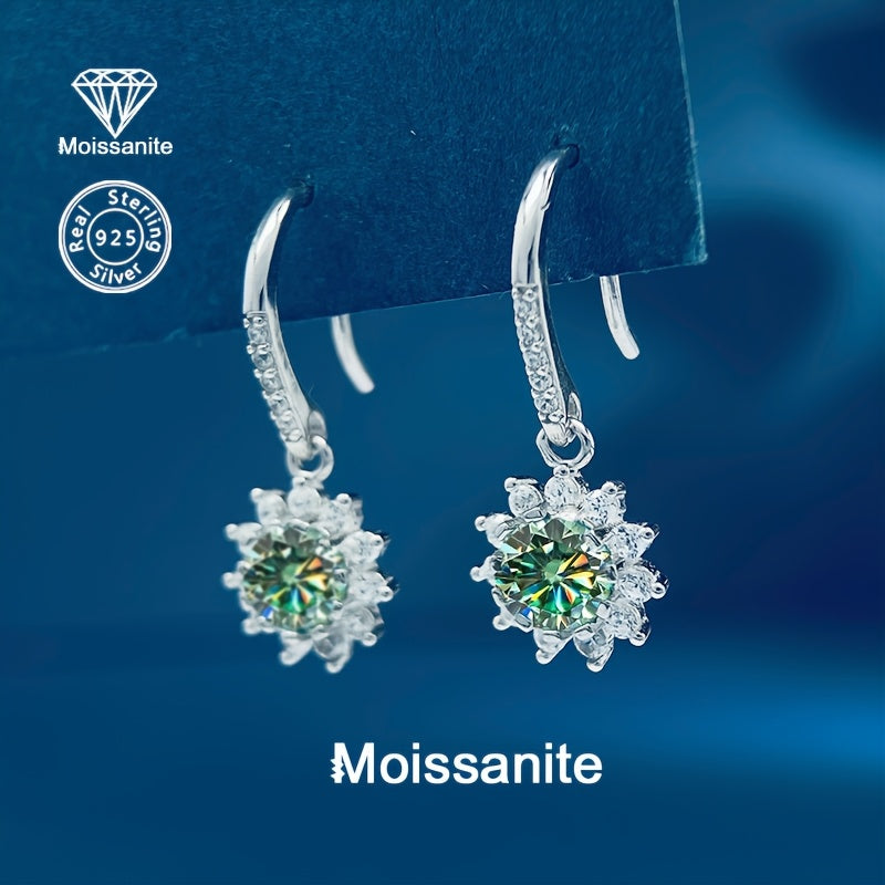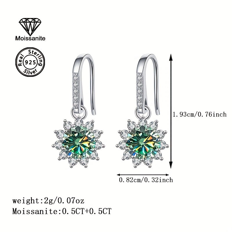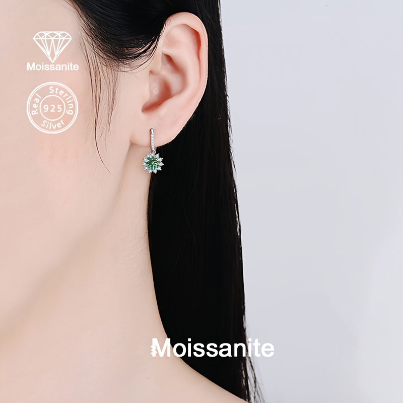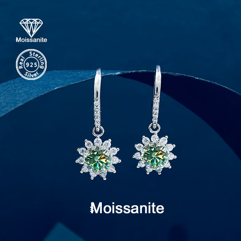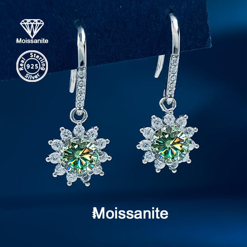 • 925 silver sunflower earrings with 1 carat colorful moissanite