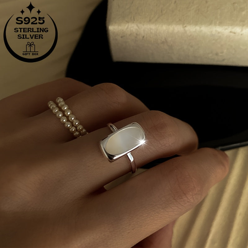This elegant 925 sterling silver ring features a faux jade inlay, perfect for weddings and parties. It weighs approximately 2.5g.