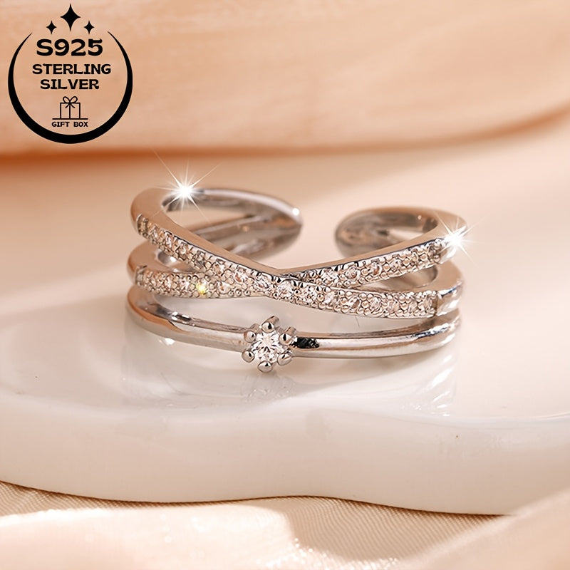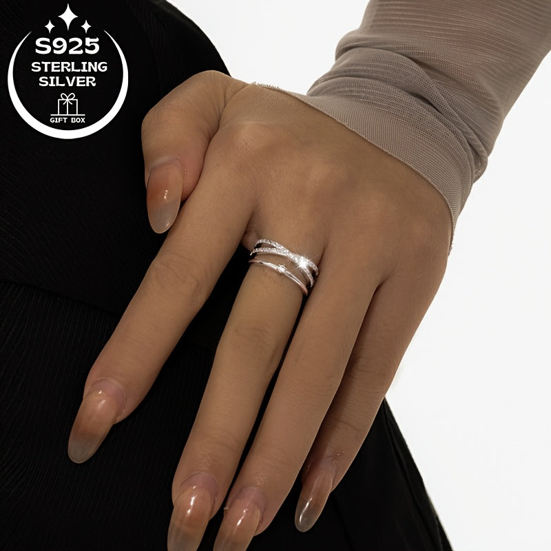 • 925 sterling silver adjustable ring with layer line design