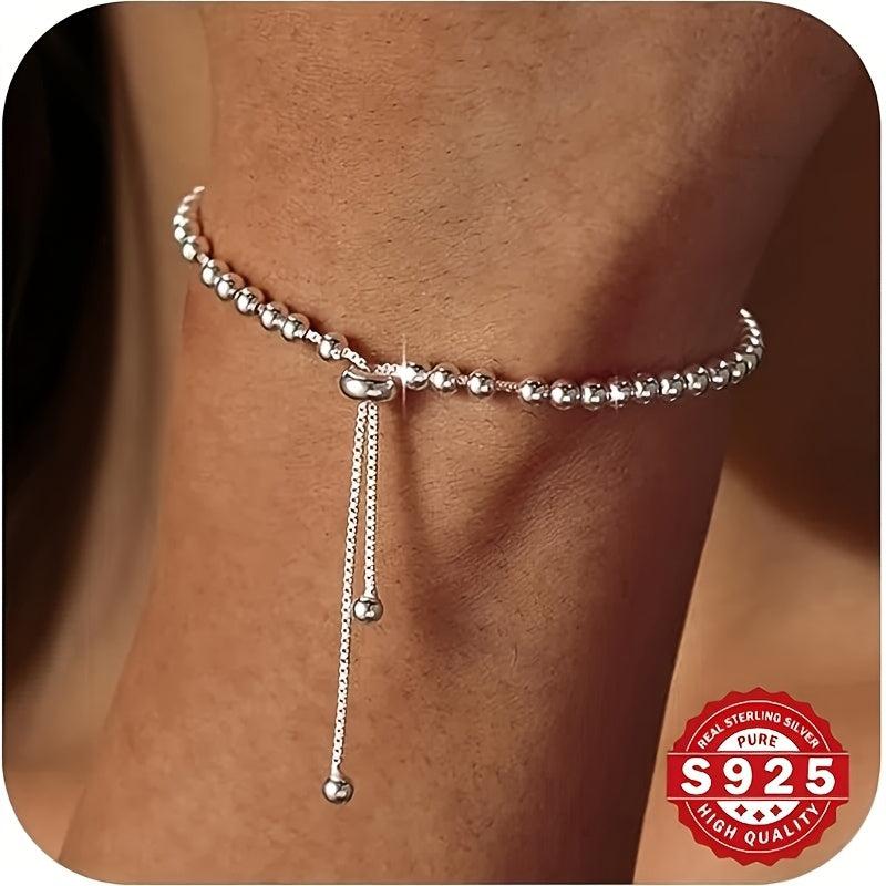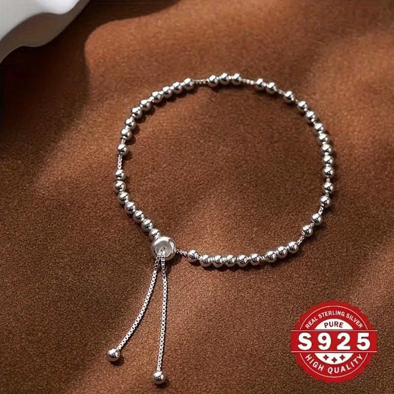 925 Silver Bead Ball Bracelet Adjustable Women's Handwear for Daily Wear & Gifts