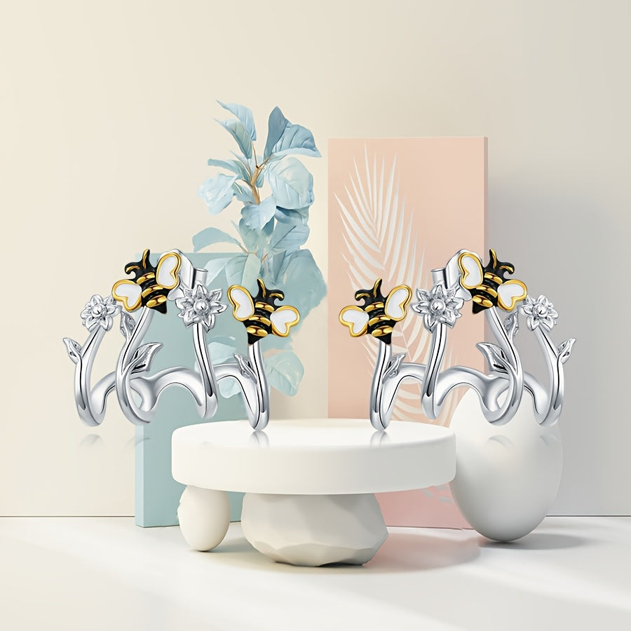 Add a touch of nature-inspired charm to your look with these bee-themed silver earrings and clips.