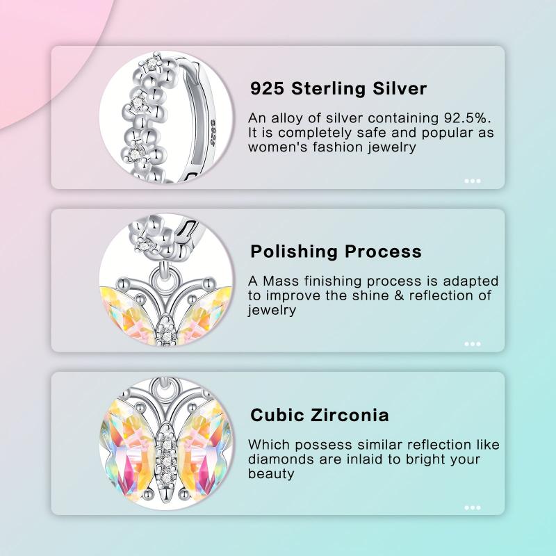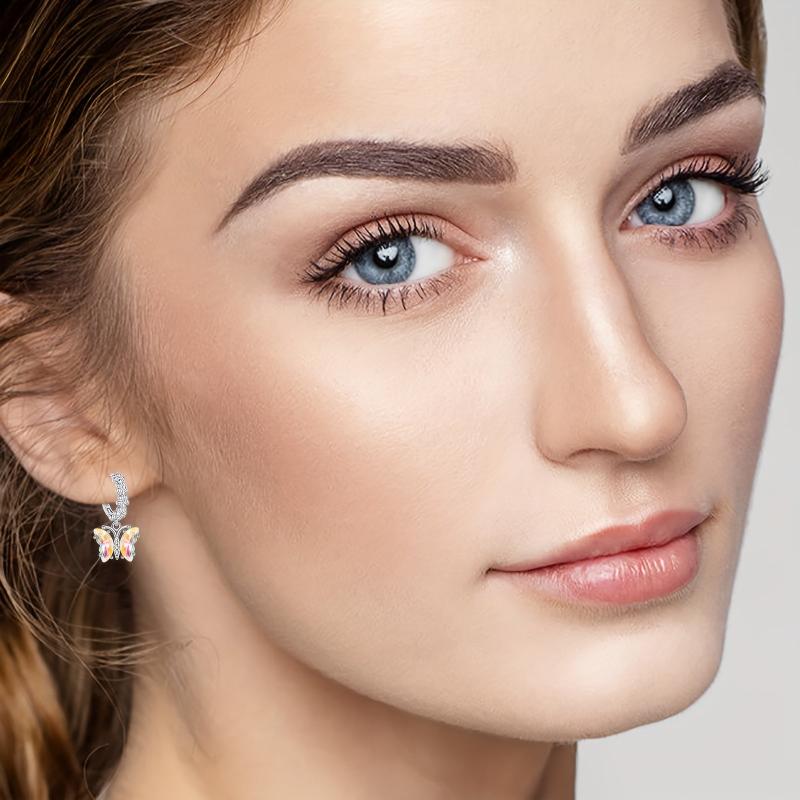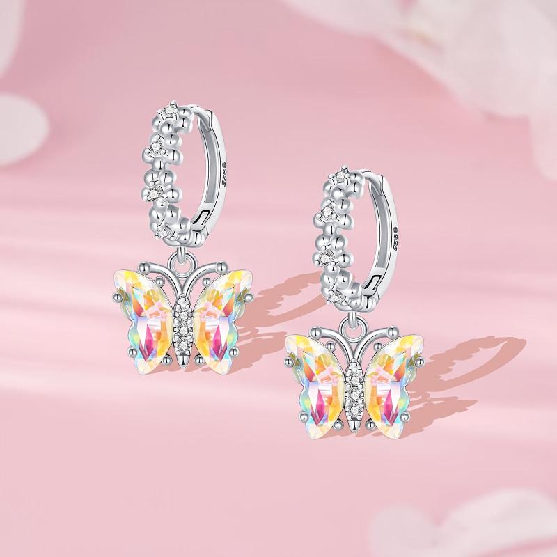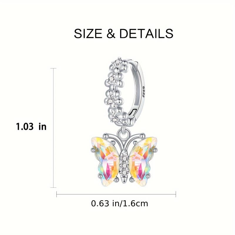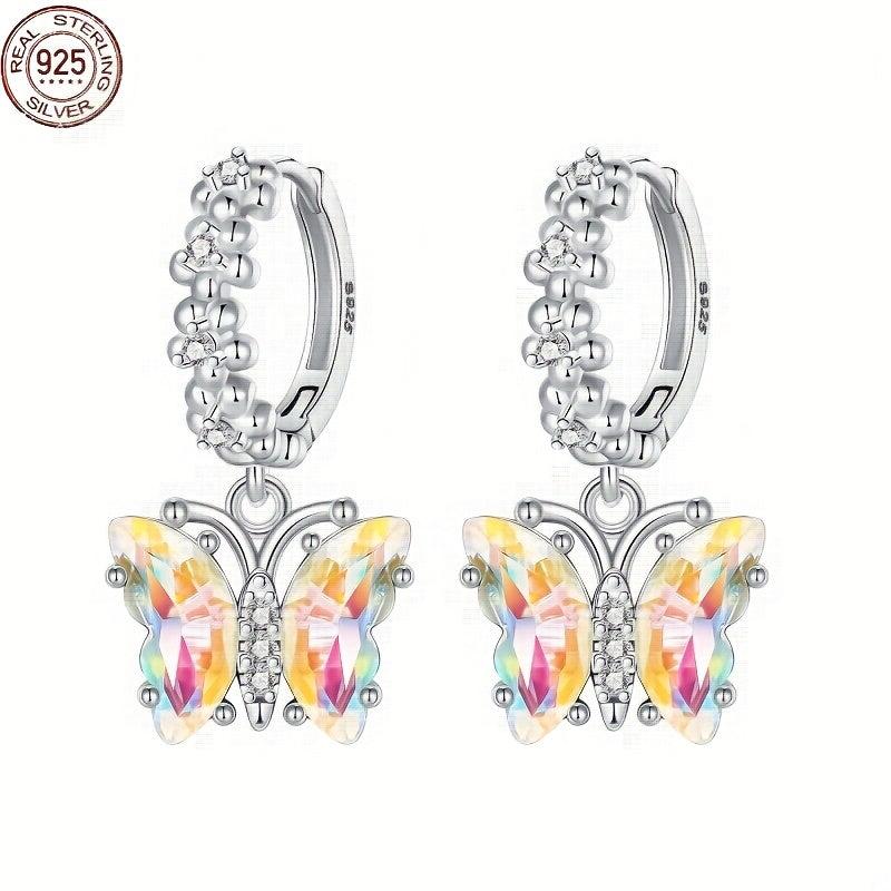 925 Silver Butterfly Earrings with Colorful Zirconia