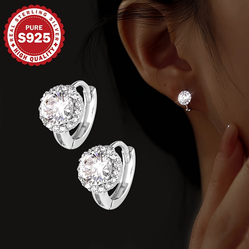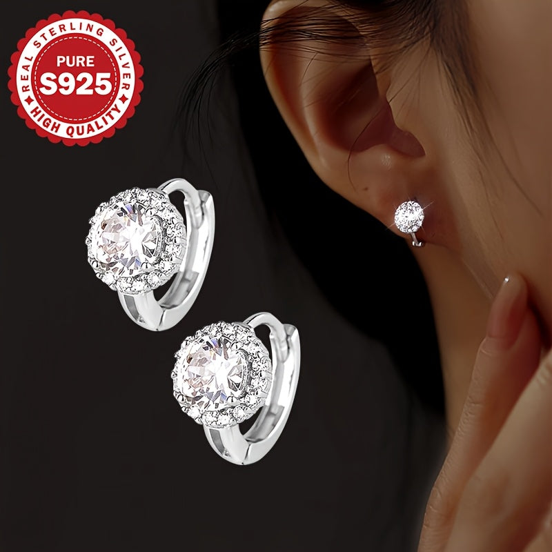 925 Silver CZ Hoop Earrings Hypoallergenic 6g Sparkling Studs for Weddings
