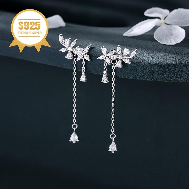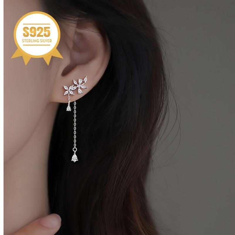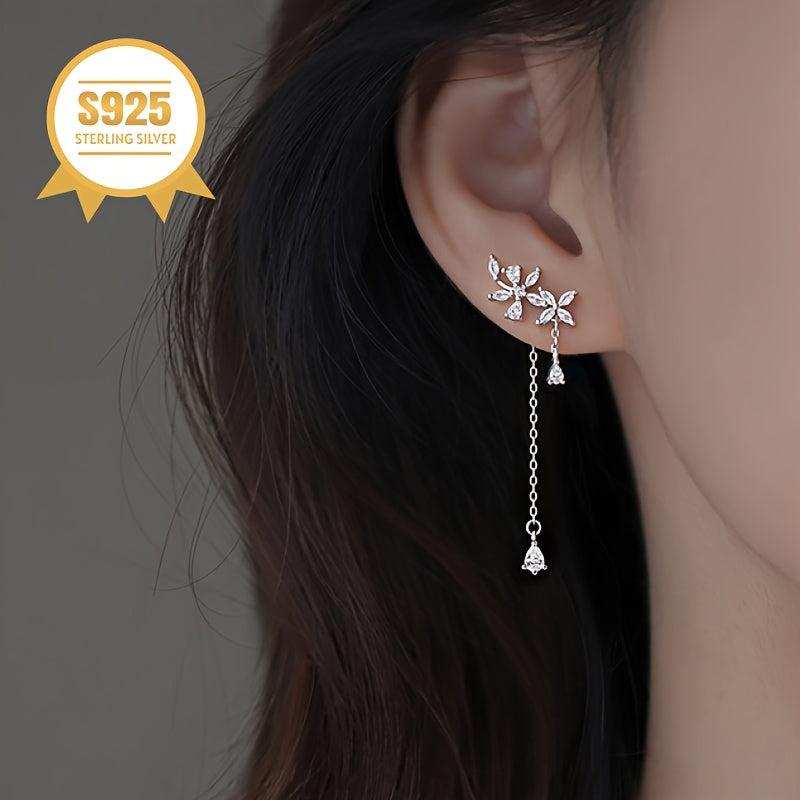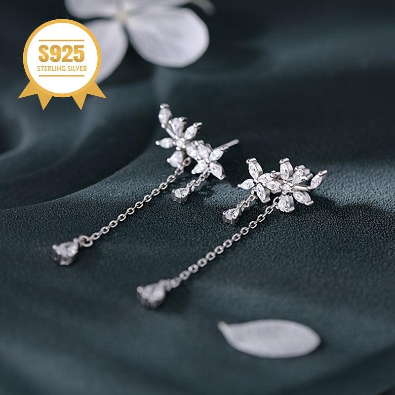 These 925 sterling silver flower dangle earrings are perfect for Valentine's Day and Mother's Day. They are low allergy and anti-tarnish, weighing 2.9g. Add a touch of elegance to any outfit with these festive dangling earrings.