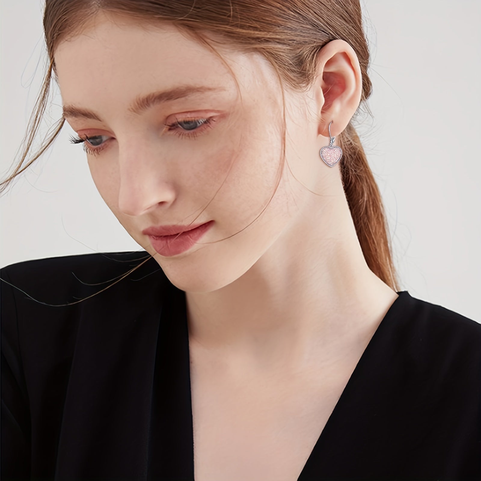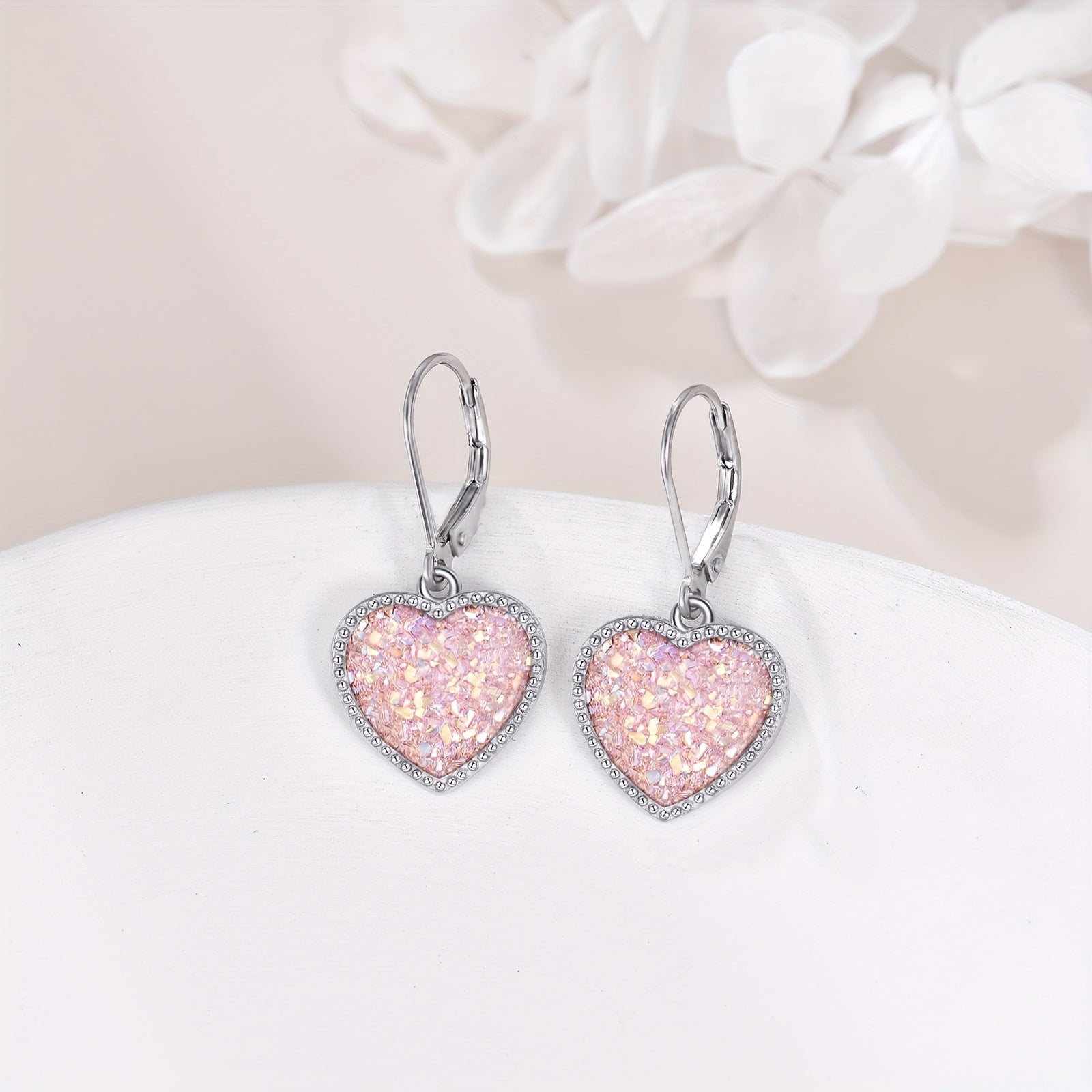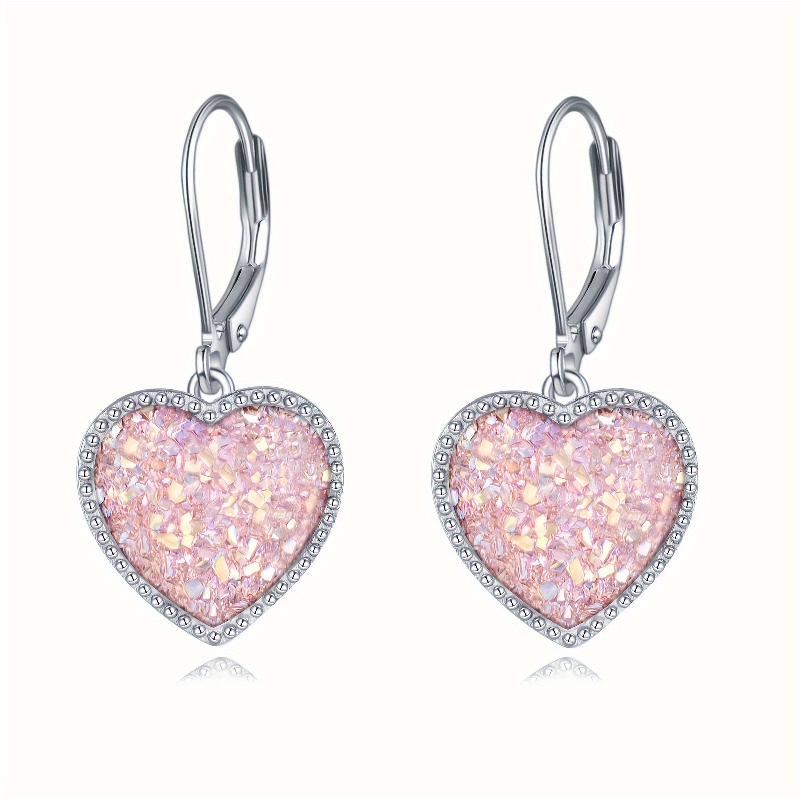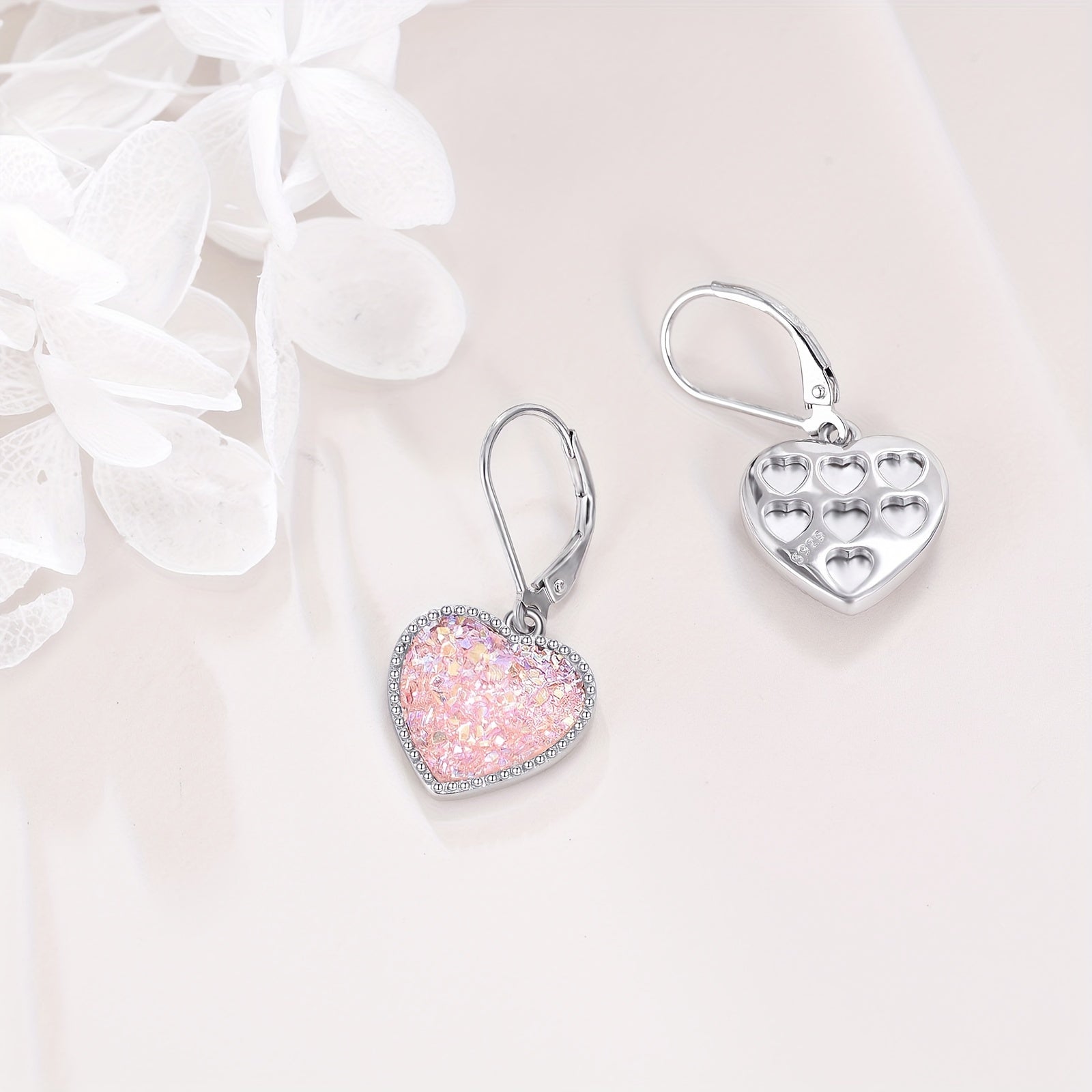 These elegant heart-shaped earrings feature a beautiful pink crystal pendant, crafted from high-quality 925 sterling silver. Perfect for adding a touch of romance to any outfit.