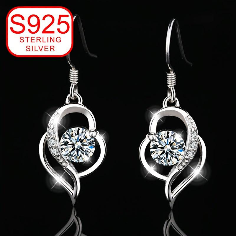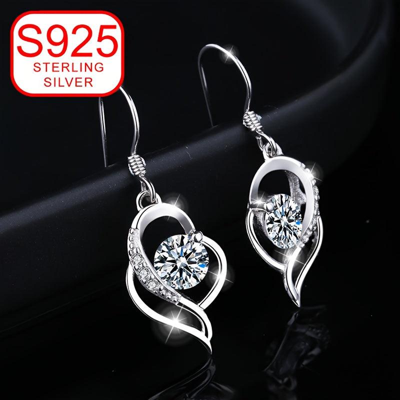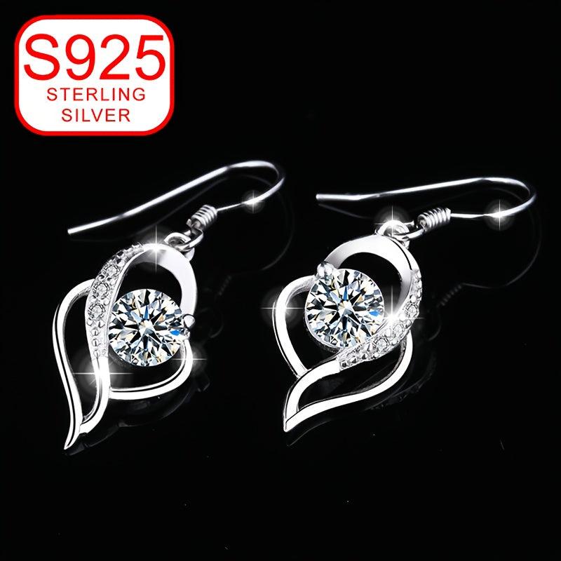 Elegant and hypoallergenic pair of heart-shaped earrings crafted from 925 silver. Features a stylish hollow design with long dangle hooks, perfect for women. Versatile accessories that exude charm and sophistication.