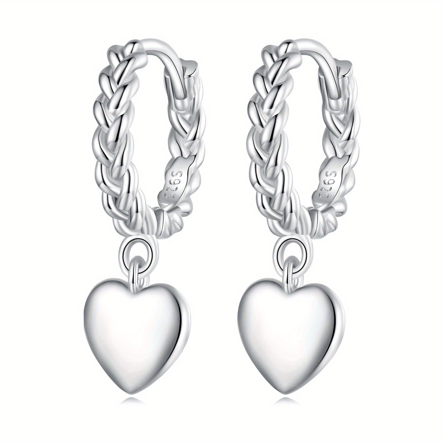 These hoop earrings feature heart pendant design, crafted from 925 sterling silver. Perfect gift for loved ones.