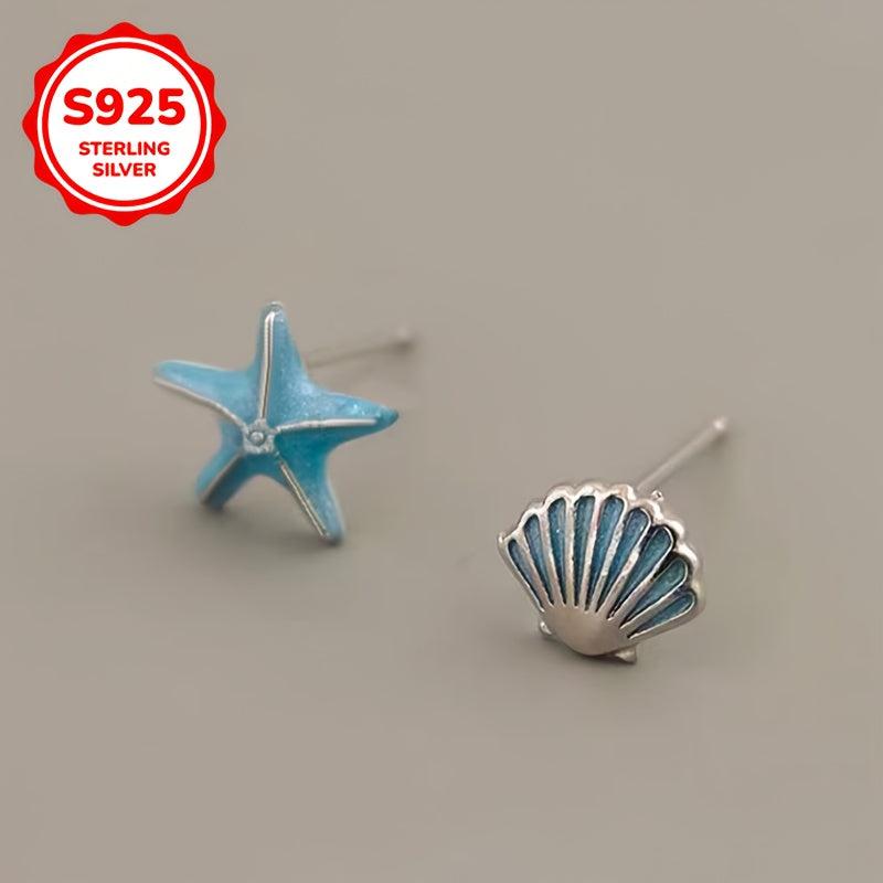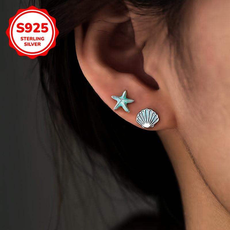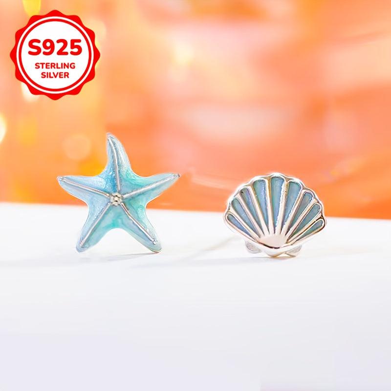 These 925 silver earrings are stylish and hypoallergenic, featuring starfish and shell design. Perfect for couples or girls with a sweet temperament.