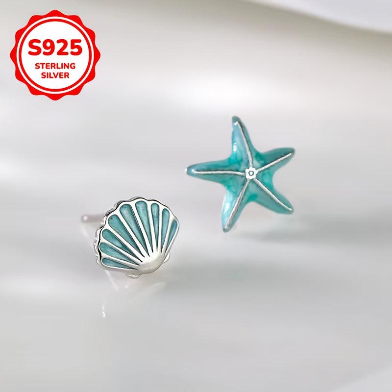 925 Silver Hypoallergenic Earrings Starfish Shell Asymmetrical Earrings