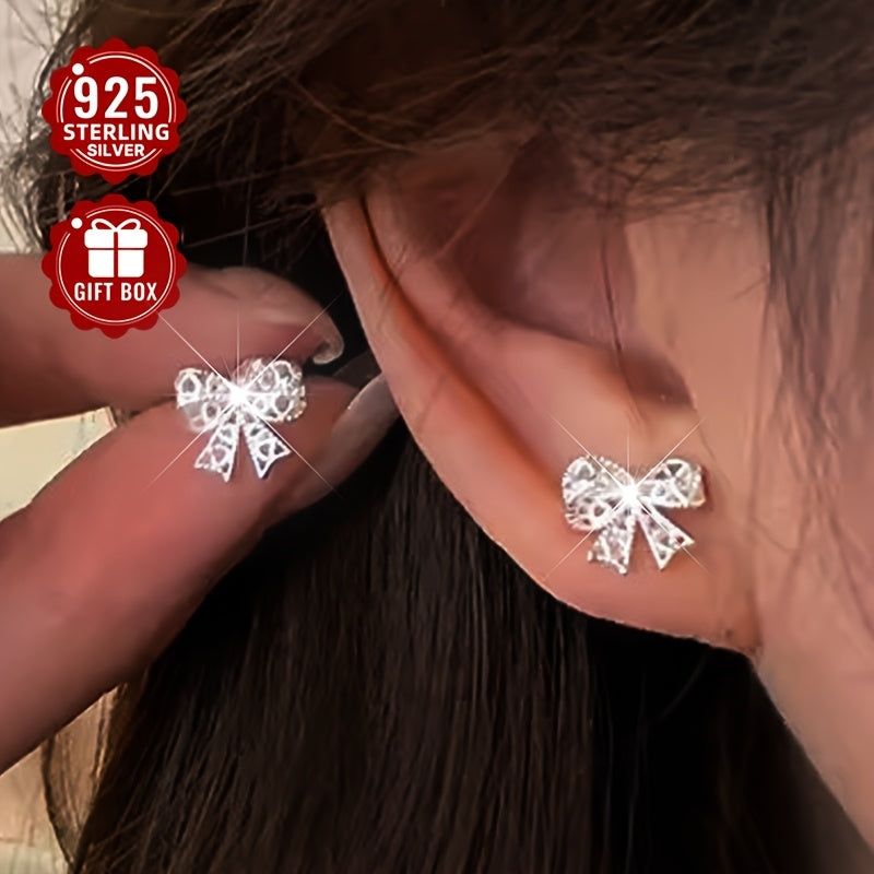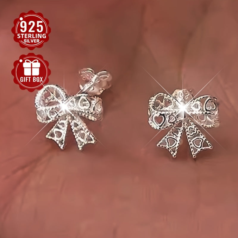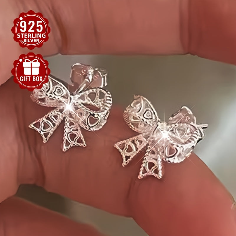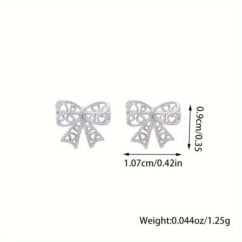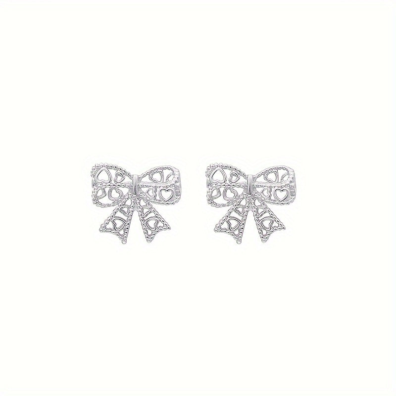 Add a touch of elegance with these lace hollow bow stud earrings made from 925 sterling silver. Perfect for daily wear or special occasions.