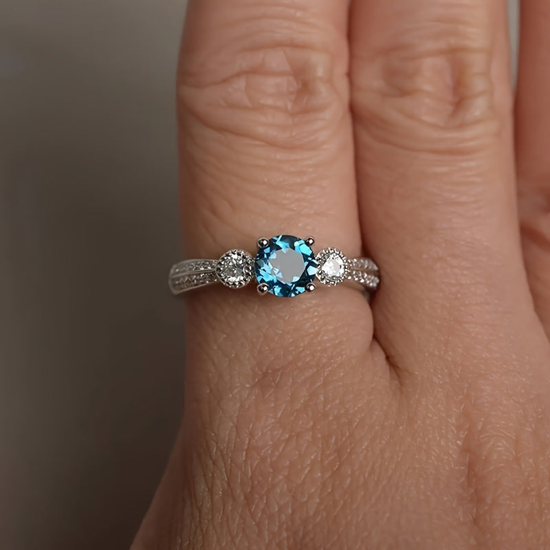 This sterling silver ring features geometric zirconia inlay for a touch of elegance and sparkle. Perfect for everyday wear or special occasions.