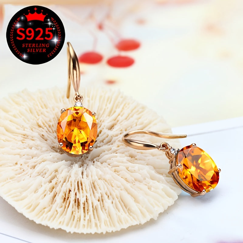Elegant 925 sterling silver earrings featuring sparkling citrine and cubic zirconia stones. Perfect for engagements, weddings, or as a gift for loved ones.