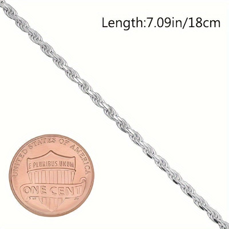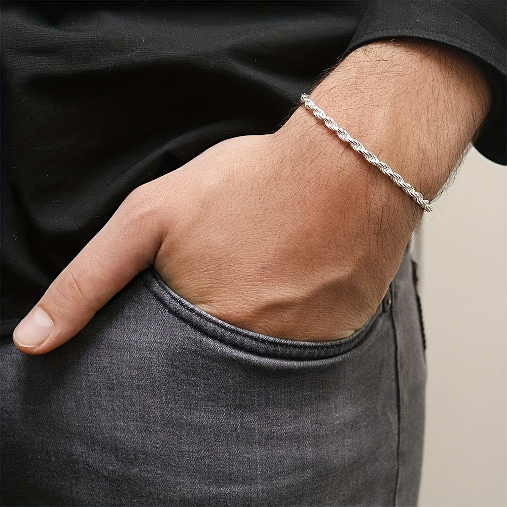 925 Silver Twisted Rope Bracelet Classic Allergy-Free 3 1G Valentine&