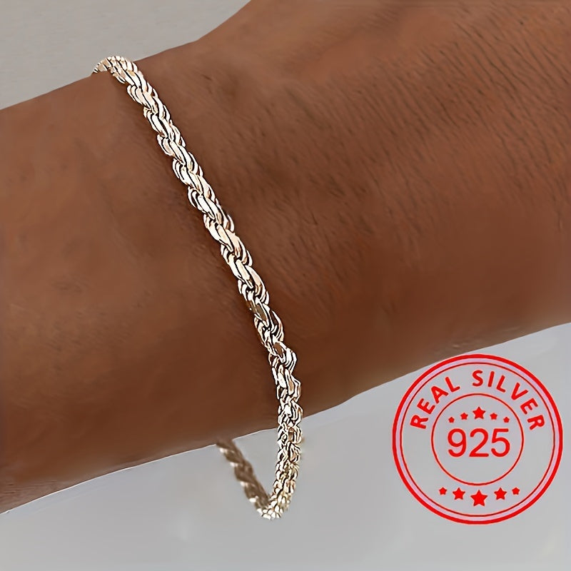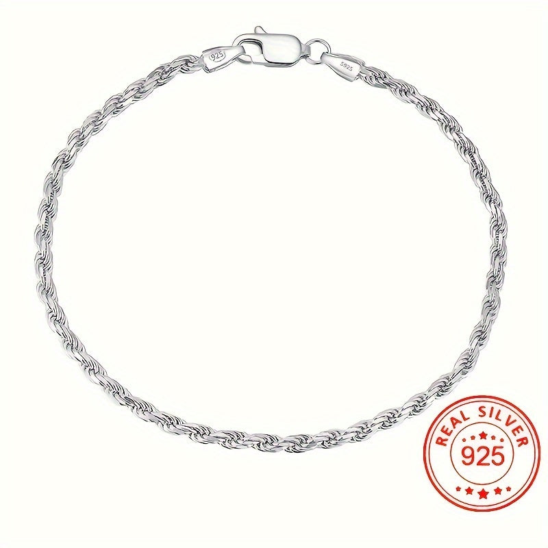 925 Silver Twisted Rope Bracelet Classic Allergy-Free 3 1G Valentine's