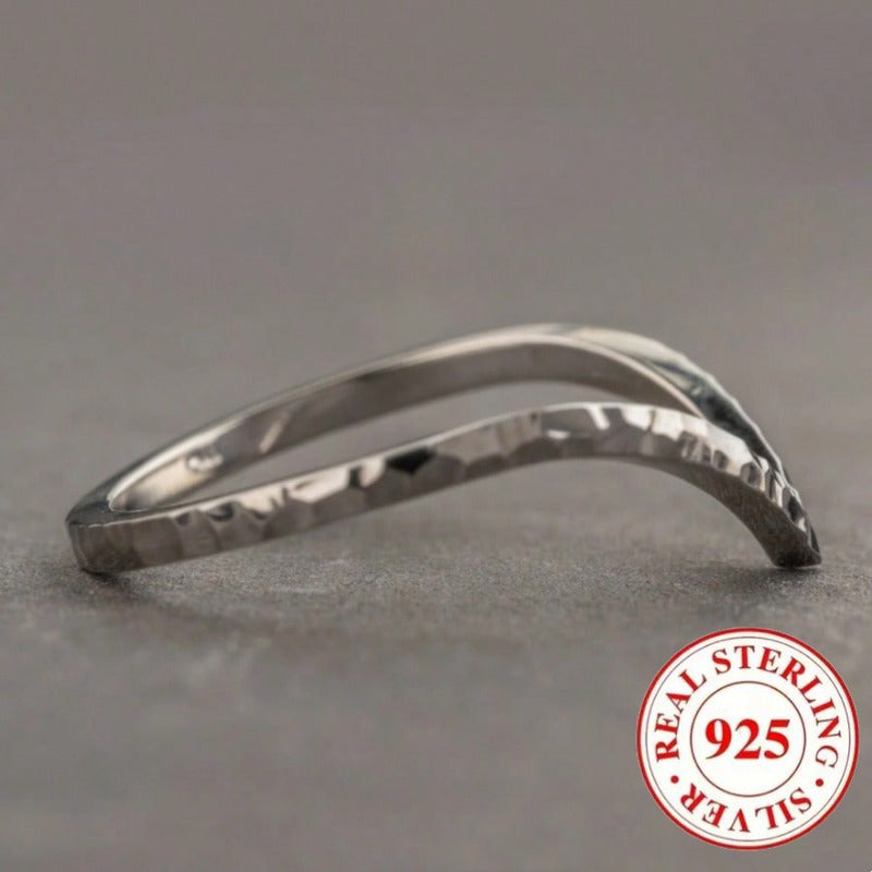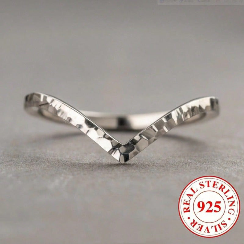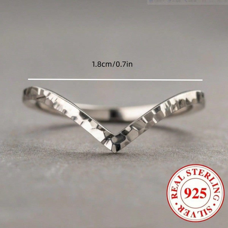 Elegant and timeless 925 pure silvery ring with a classic retro V-shaped hammer pattern design, suitable for daily wear or party events.