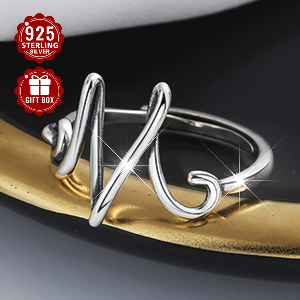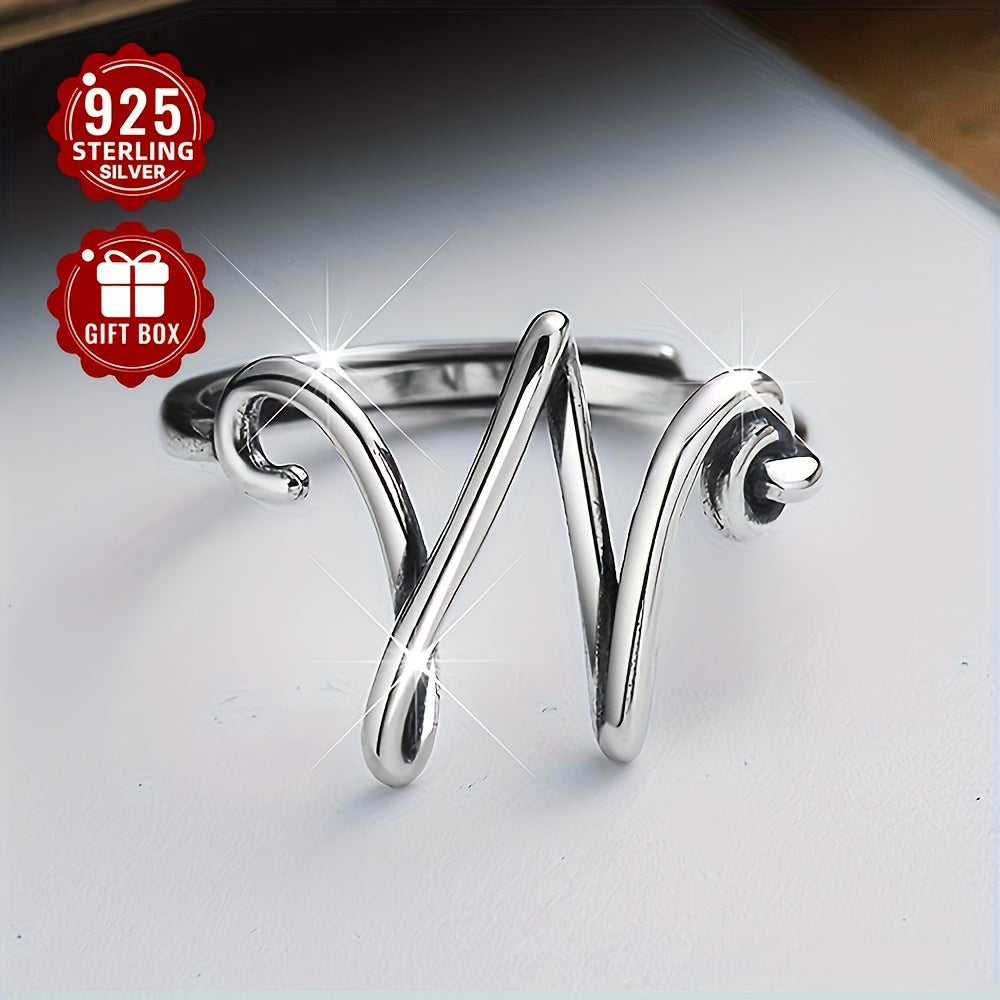 This elegant cuff ring is crafted from 925 silver with a 'W' design, perfect for daily wear or special occasions.