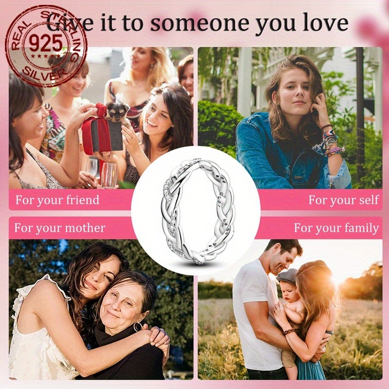 This stunning 925 sterling silver ring features intricate weave design and sparkling cubic zirconia stones. It is hypoallergenic and perfect for any occasion like weddings, parties, birthdays, or Christmas gifts.