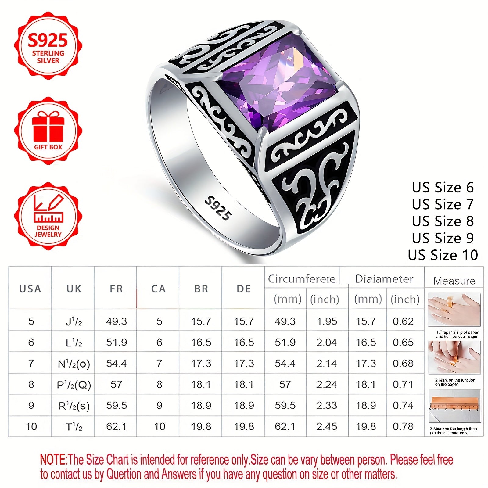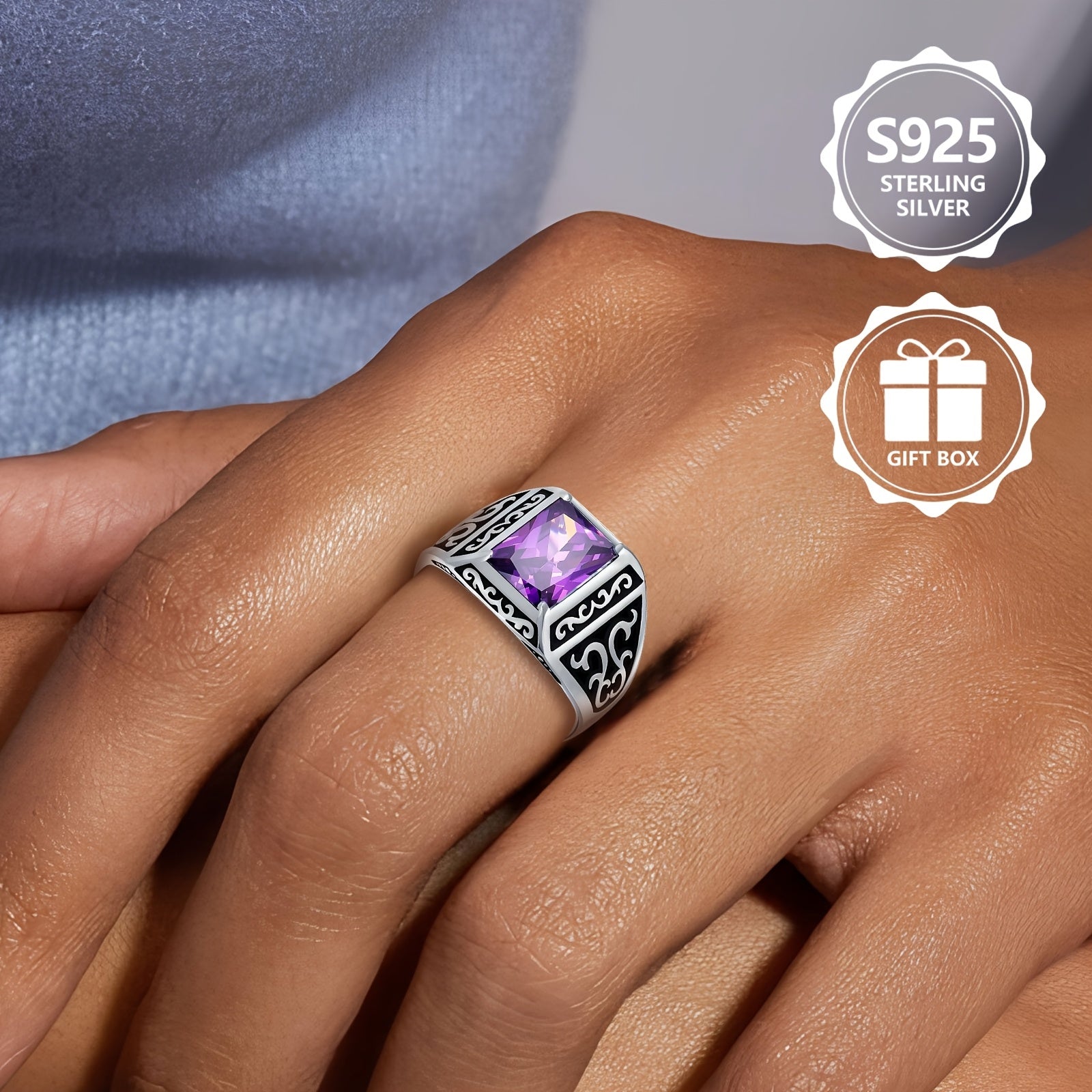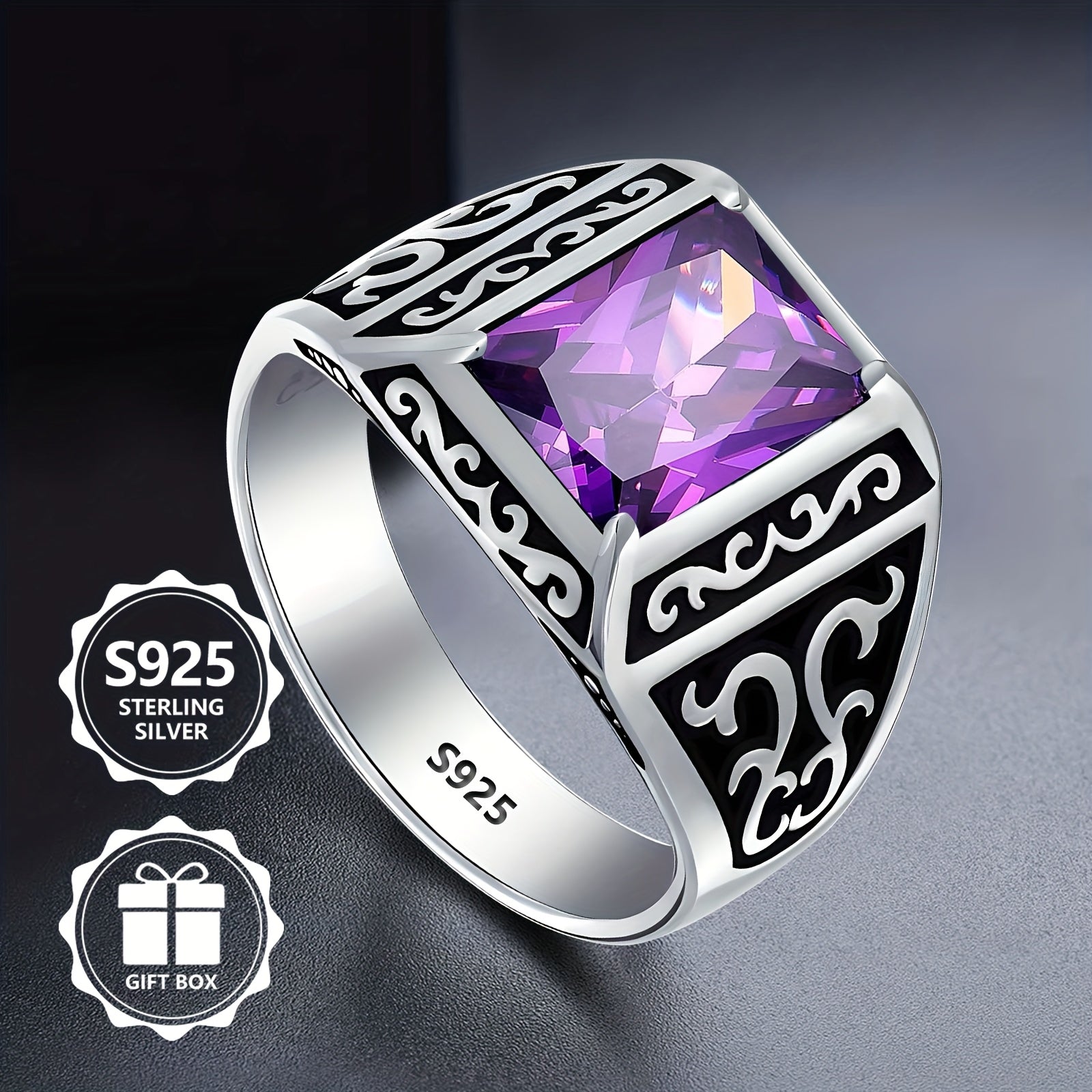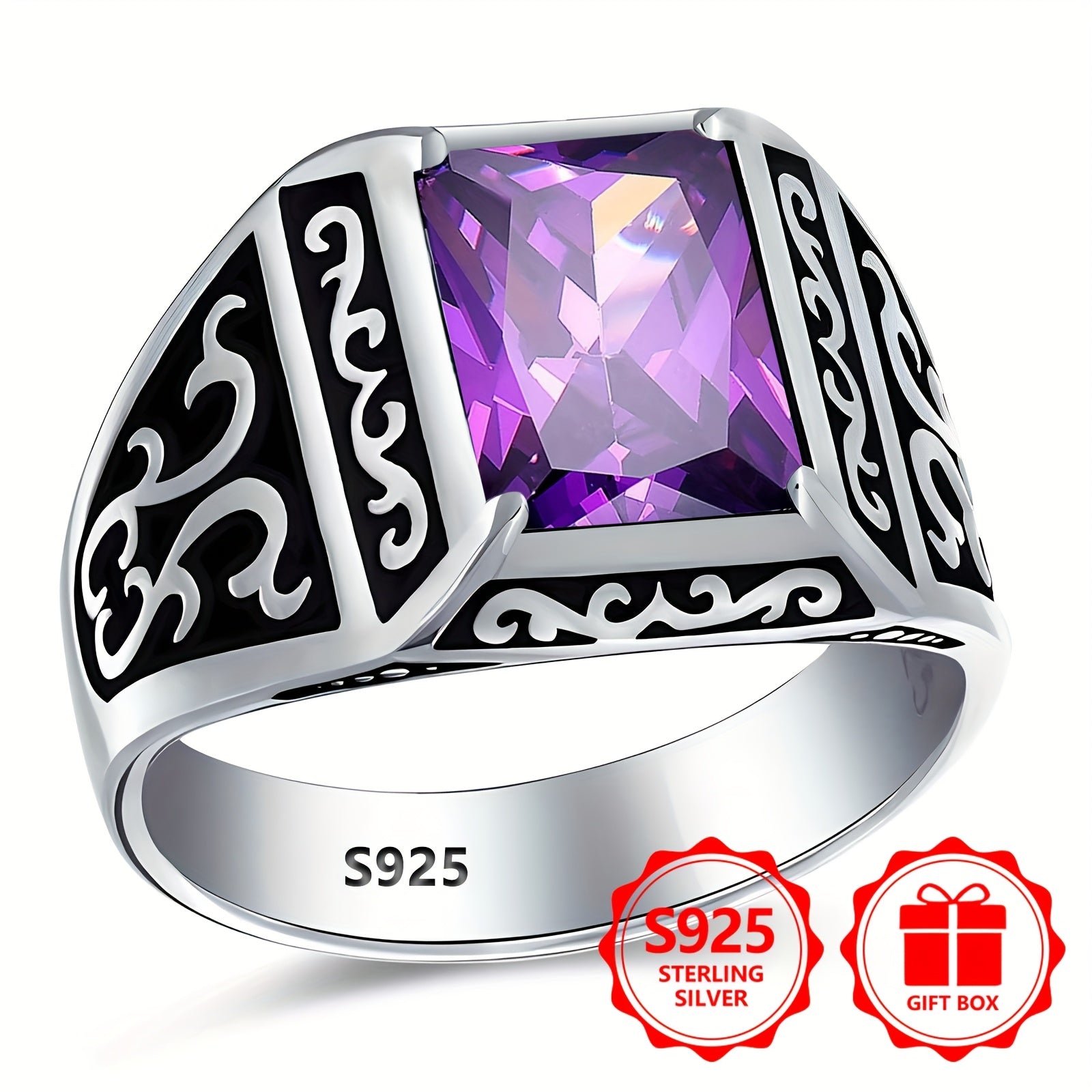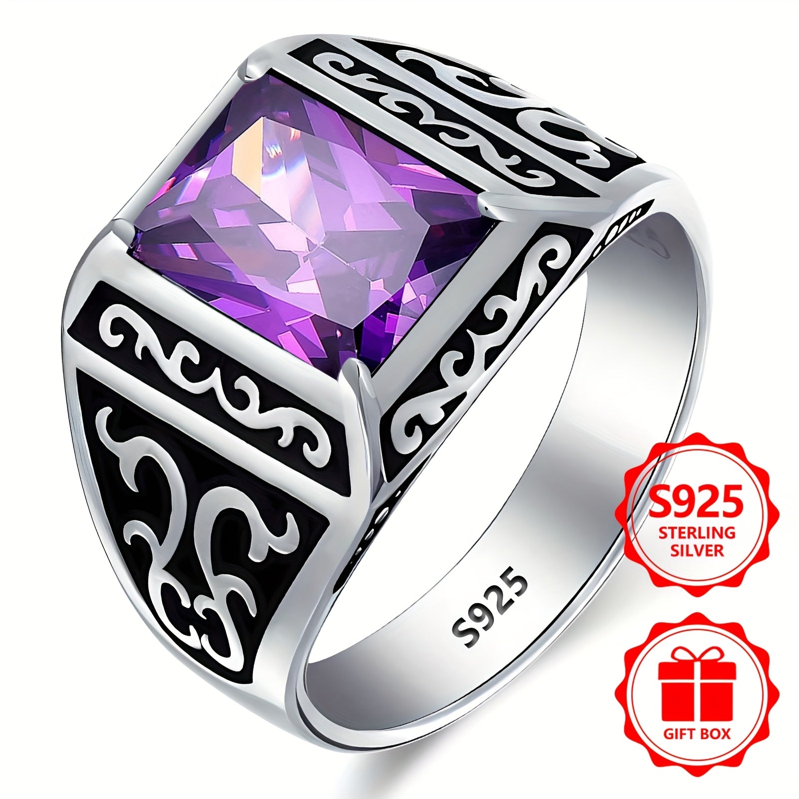 This 925 silver wide band ring features a stunning purple synthetic zirconia stone, making it a perfect accessory for daily wear or party occasions. Crafted with hypoallergenic nickel-free materials, this ring is suitable for both women and men.