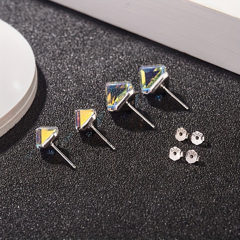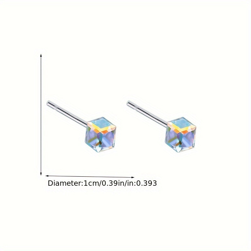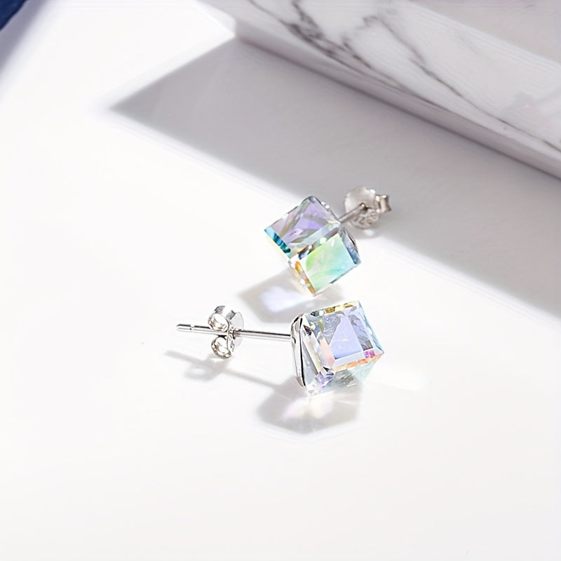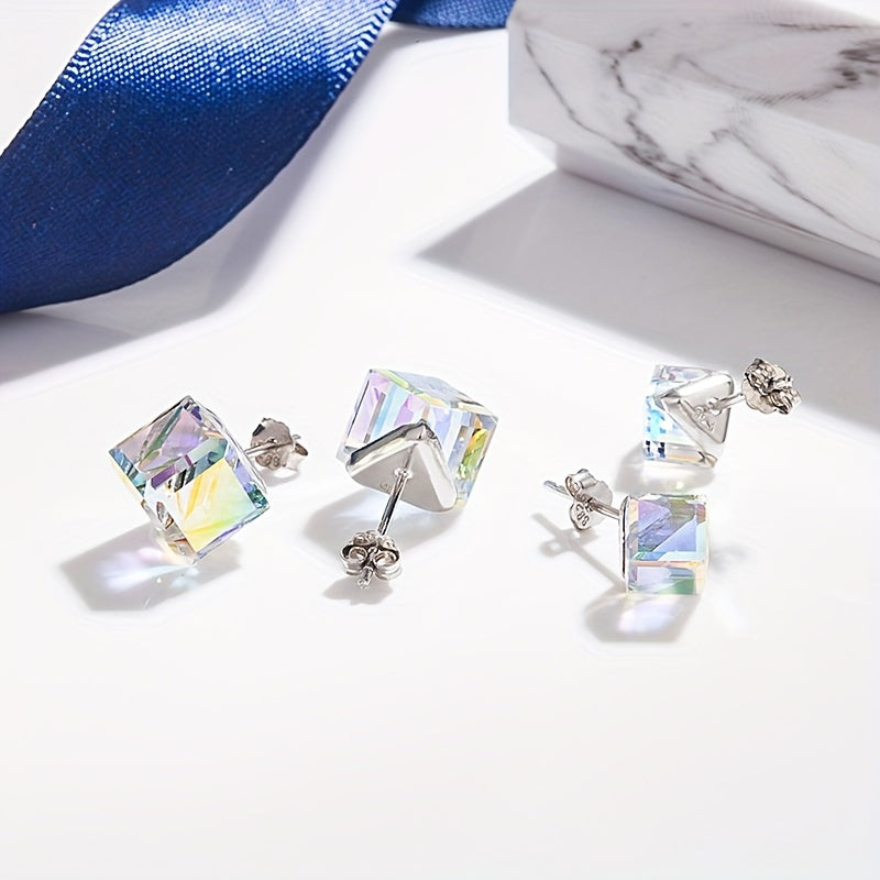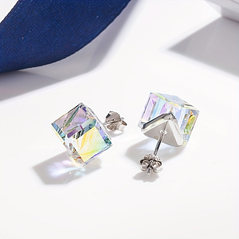 925 Silvery Cube Sugar Earrings Austrian Sweet Temperament 8mm 0.56g