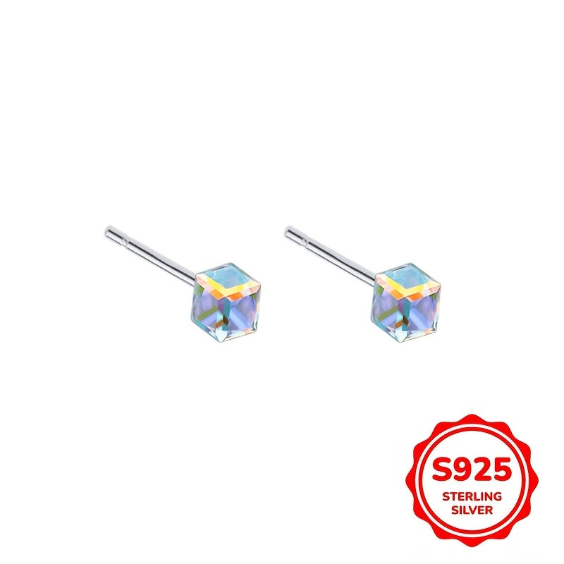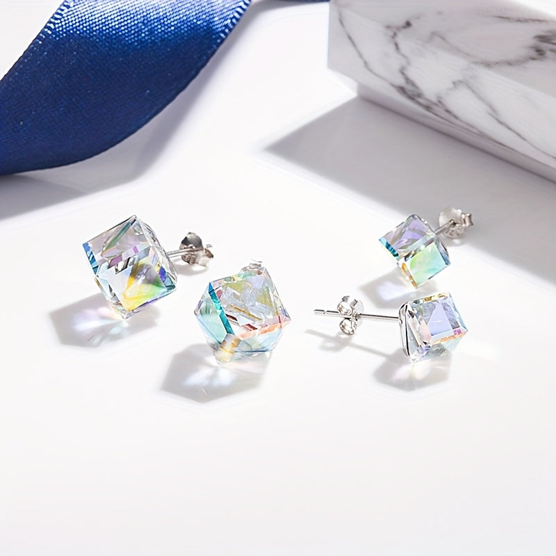 These earrings feature a pure silvery aurora cube design, adding personality and color to your look. Lightweight and sweet, perfect for a charming and stylish touch.