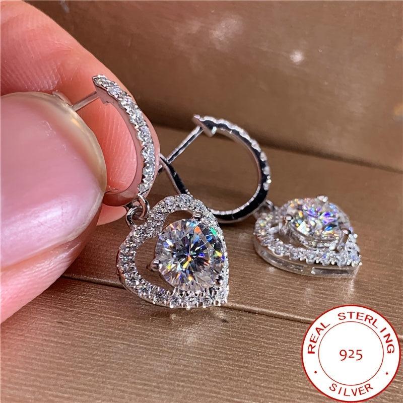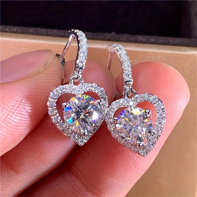925 Sterling Silver Heart Earrings with Zirconia, 4.5g