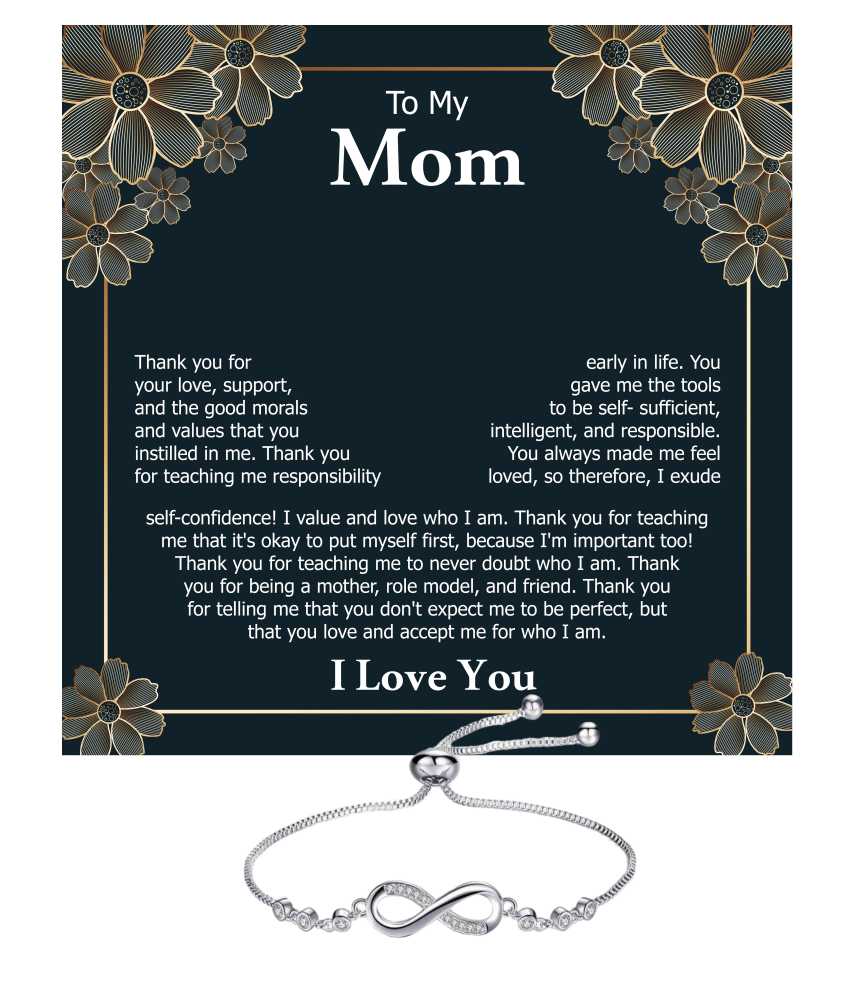 Bling Queen is an affordable fashion jewellery brand with various product types like bracelets, necklaces, earrings, rings, etc. suitable for women, men and kids. This elegant silver zirconia studded infinity bracelet is a heartfelt tribute to the enduring love and connection shared with your mother. The design features a beautifully crafted infinity symbol at its center, representing eternal love and the unbreakable bond between you and your mom. Crafted from premium silver plating, this bracelet boasts a beautiful shine, making it a versatile accessory for any occasion, from casual outings to formal gatherings. The delicate chain complements the infinity design, and the adjustable chain allows for a perfect fit on any wrist size, ensuring comfort and ease. Accompanying the bracelet is a beautifully designed message card that enhances the emotional significance of your gift.