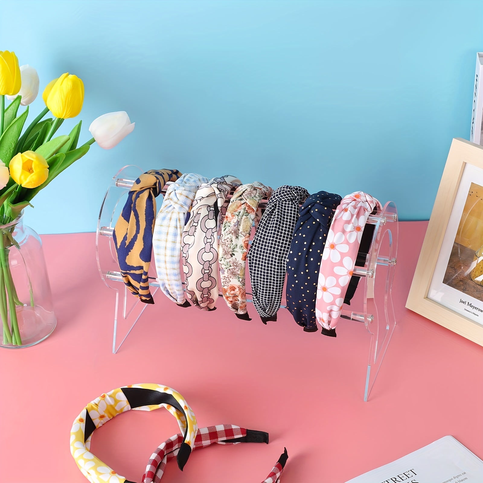 Keep your headbands neatly organized with this clear acrylic display stand. Showcase your collection in style and easily find the perfect headband for any occasion.