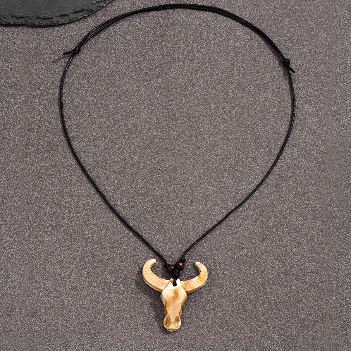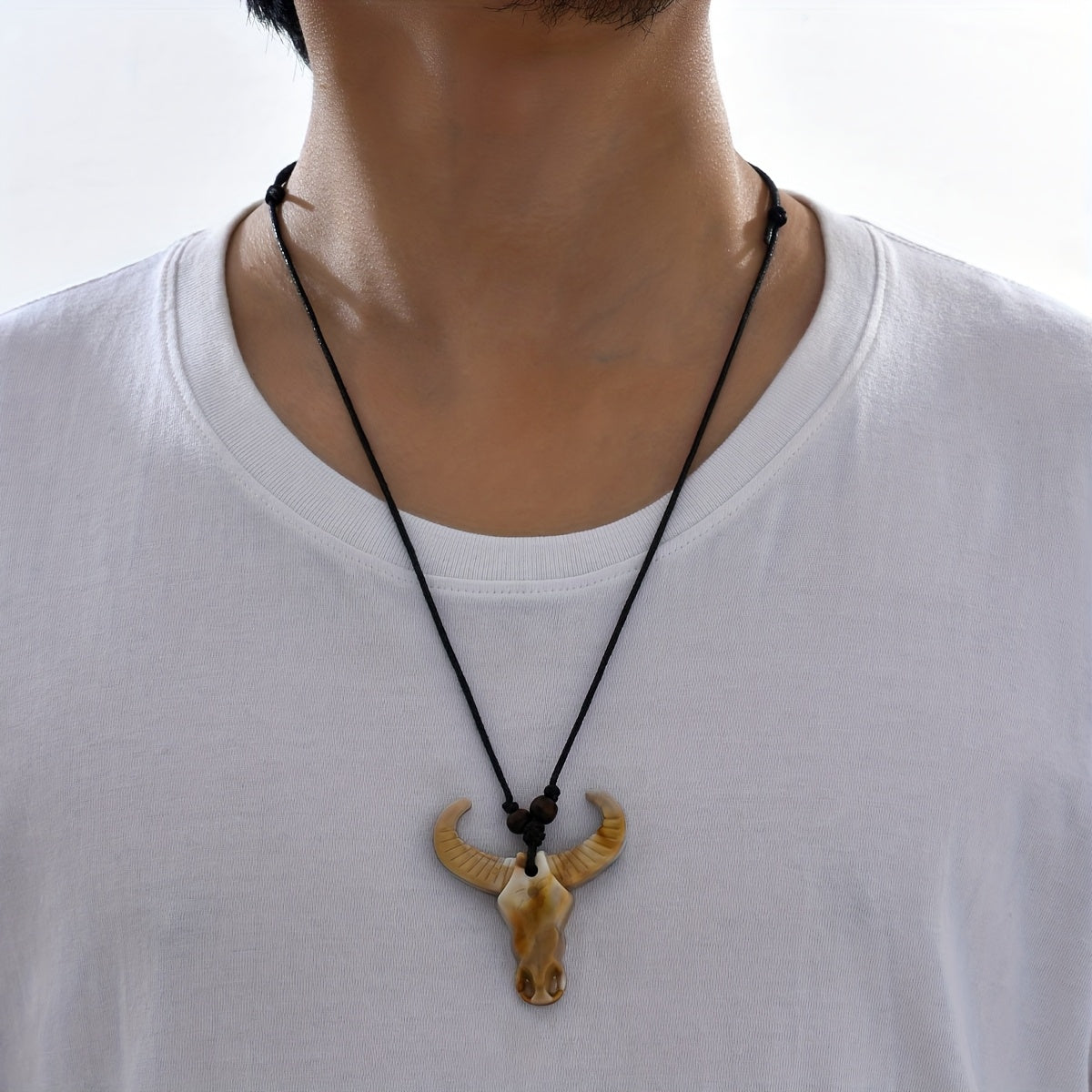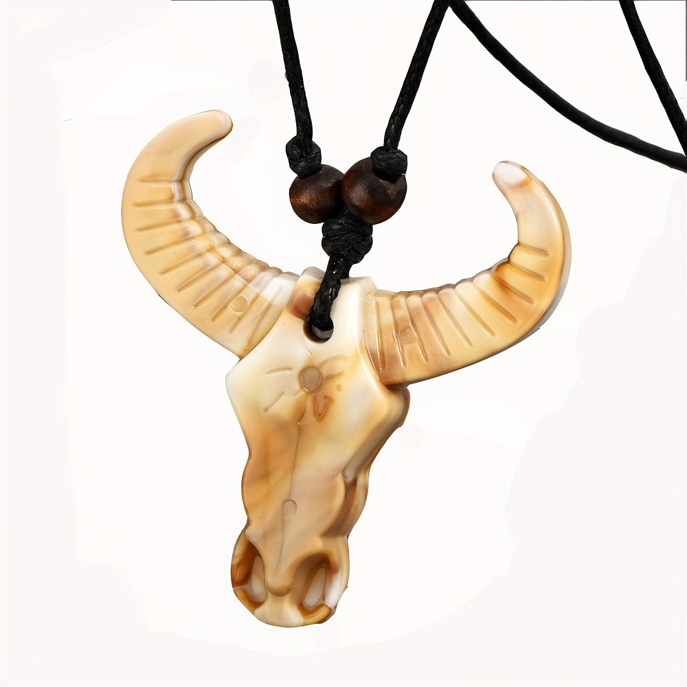 Embrace punk style with this adjustable acrylic skull bull head pendant necklace. It features a golden stretchable chain for a hipster look that exudes everyday elegance.