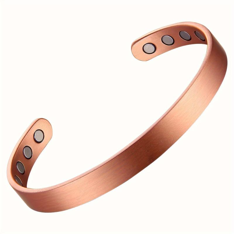 This unscented solid copper bangle is a perfect jewelry gift for family and friends. It features an adjustable design and magnetic properties.