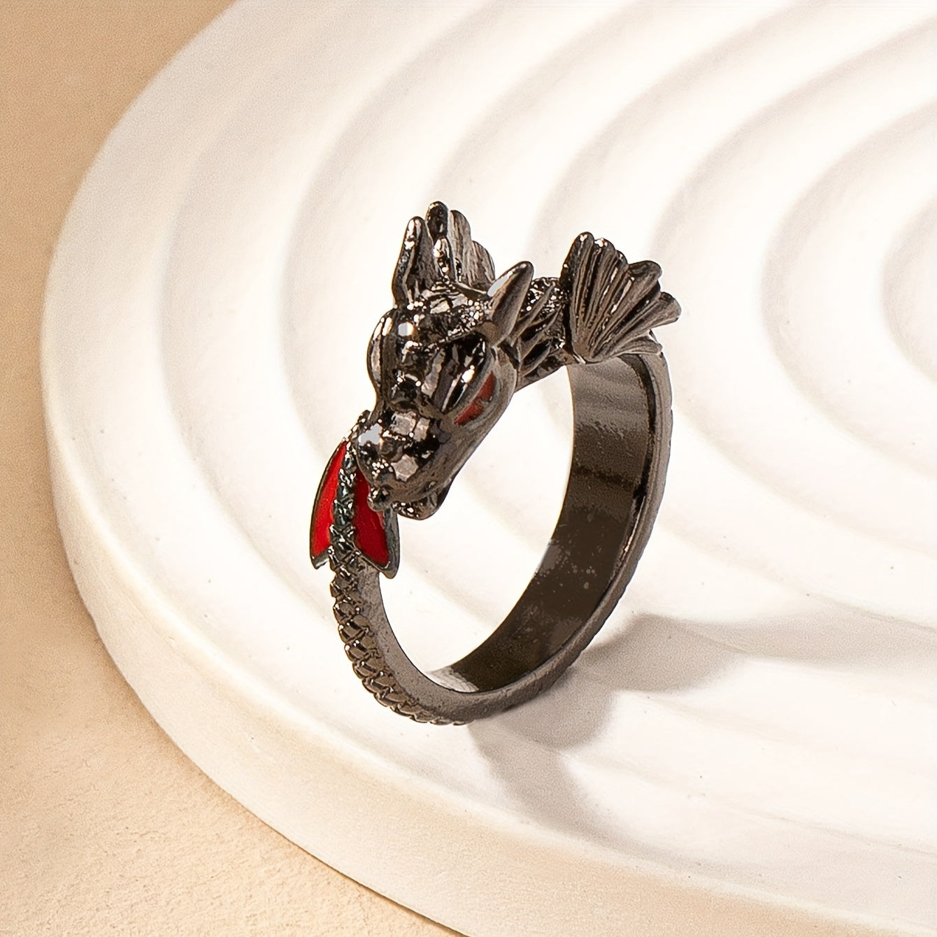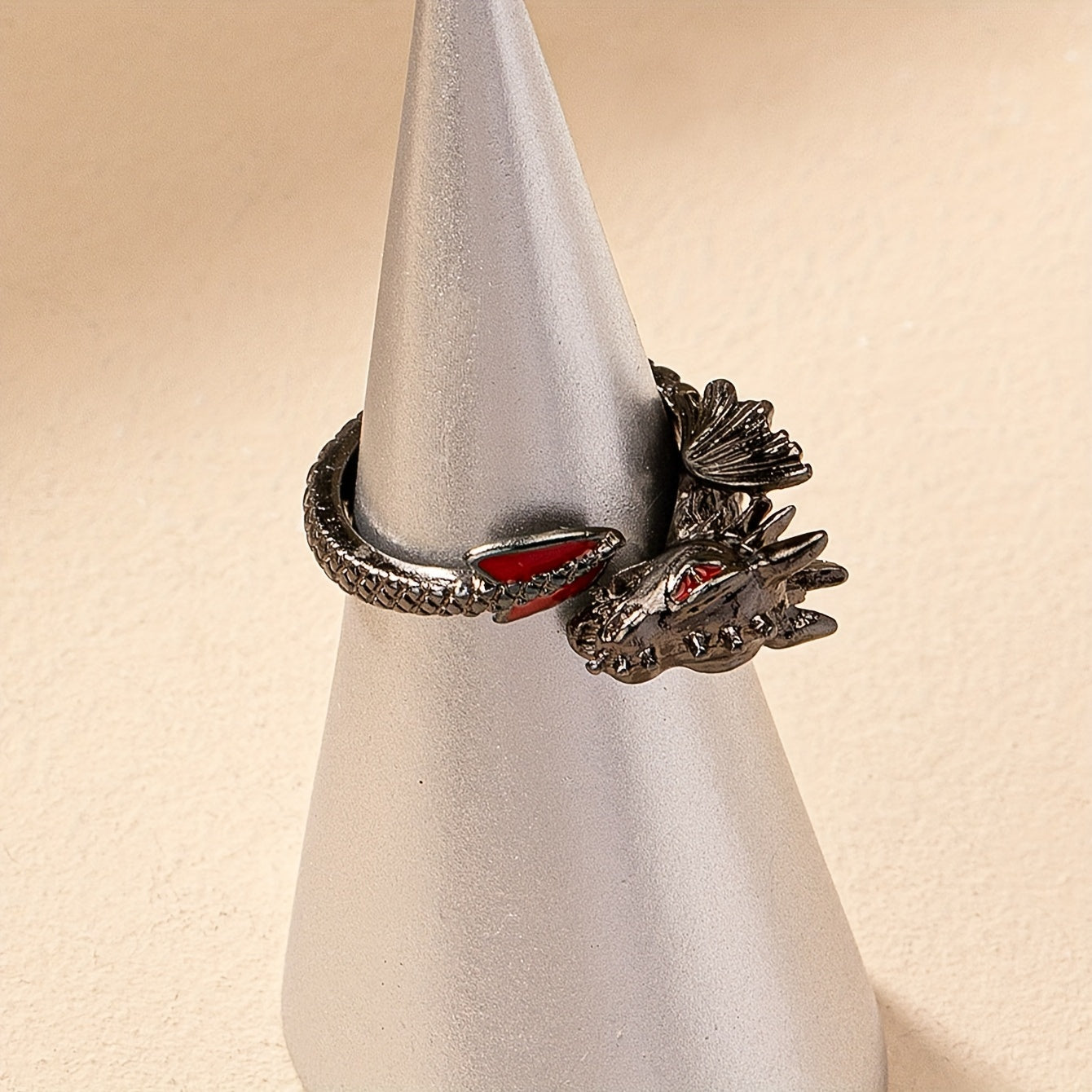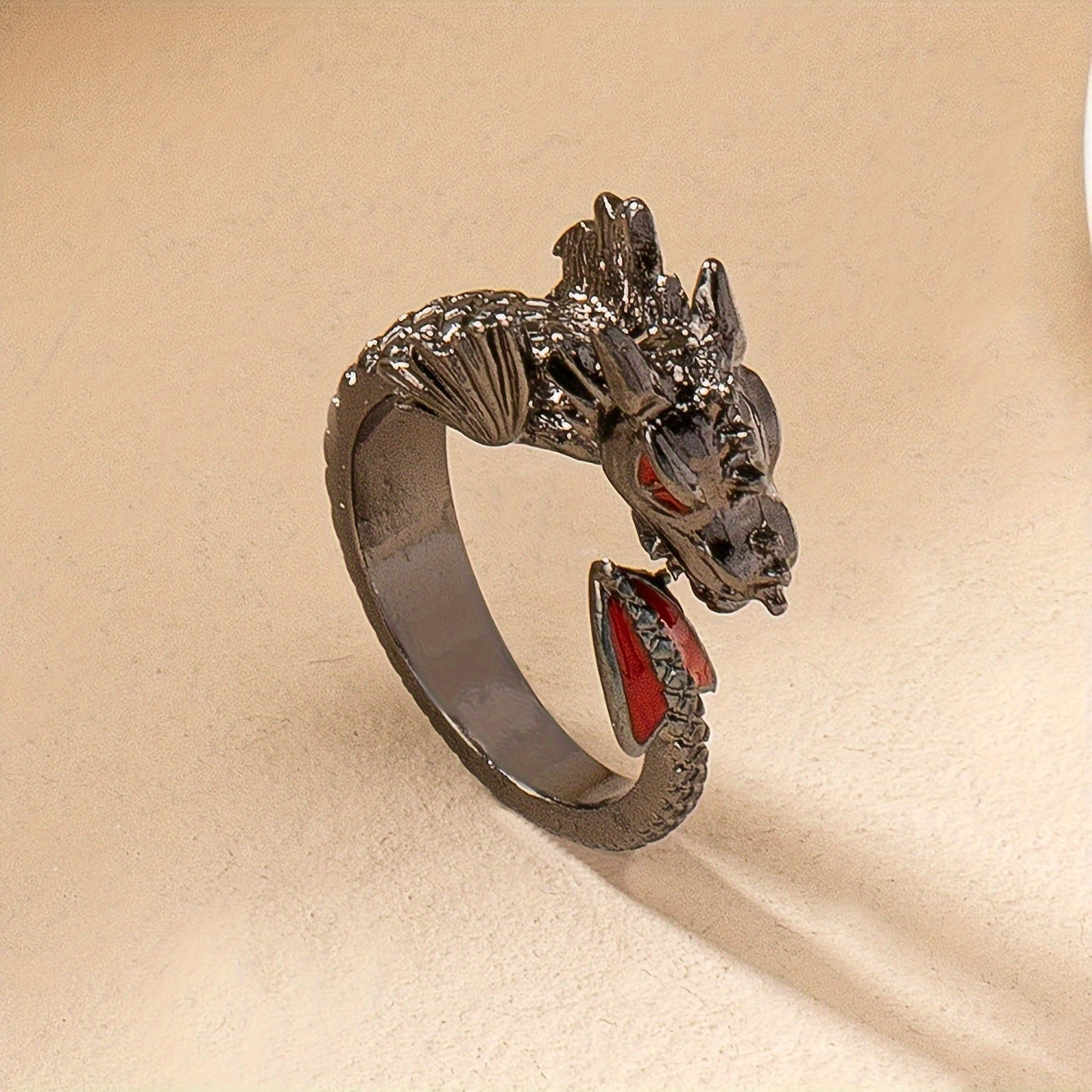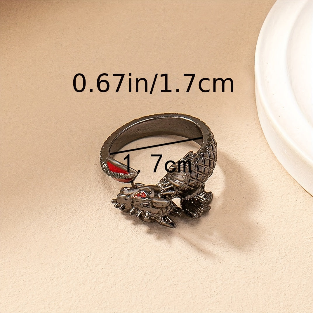 This Gothic Dragon Ring is perfect for parties, birthdays, and casual attire. Its punk style design with red accents adds a unique touch to your look.
