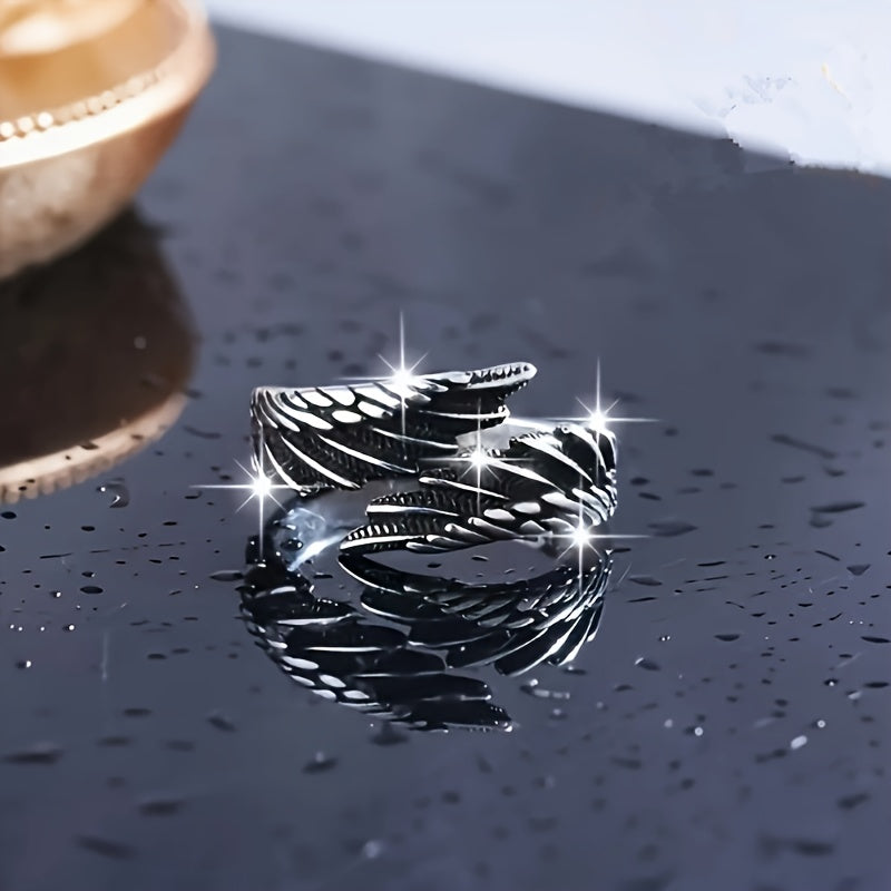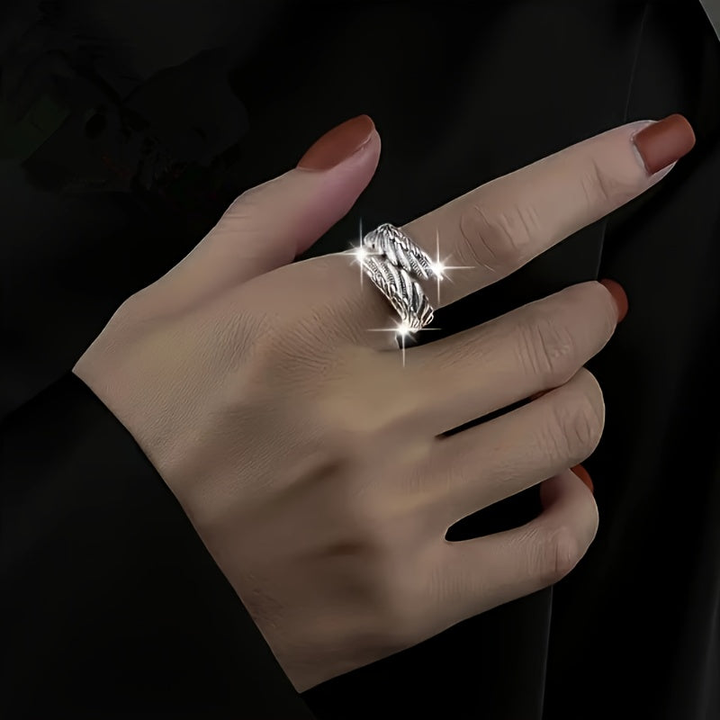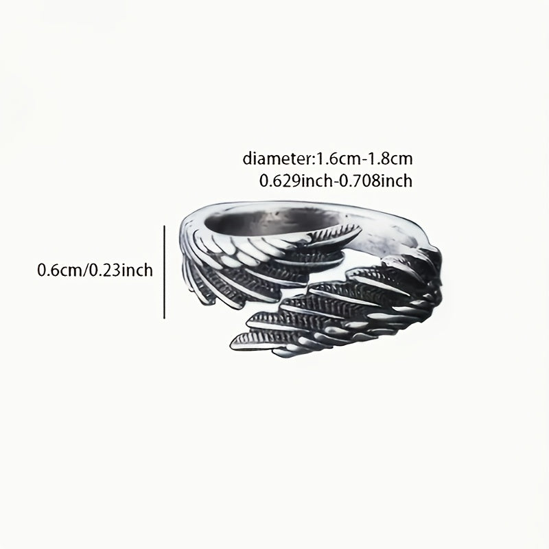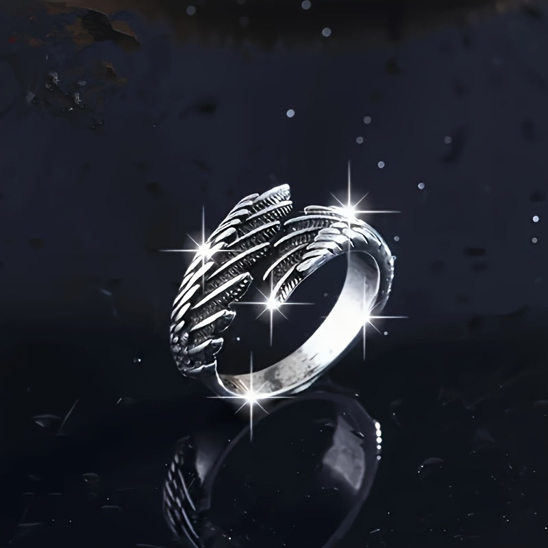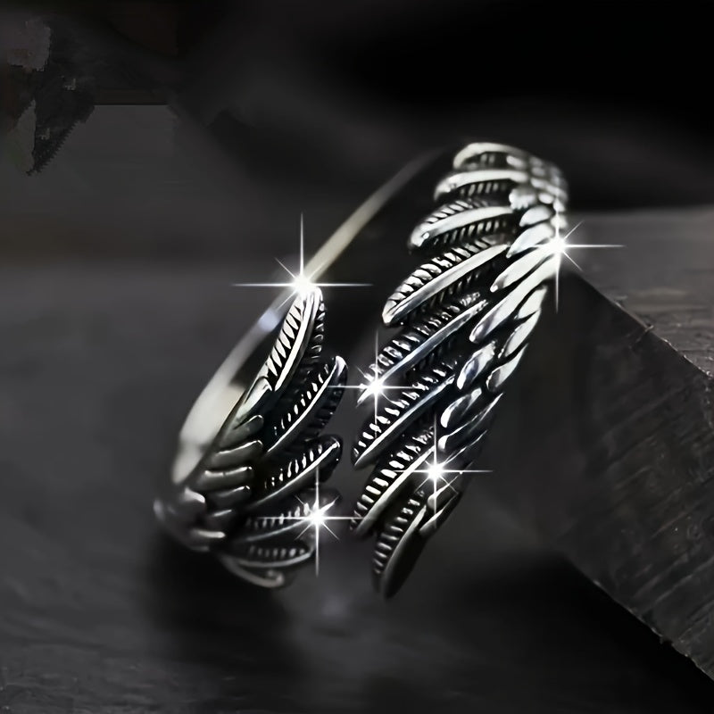 Adjustable Open Feather Ring Men Women Hip Hop Style Copper 925 Silver
