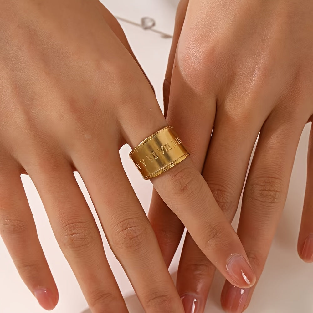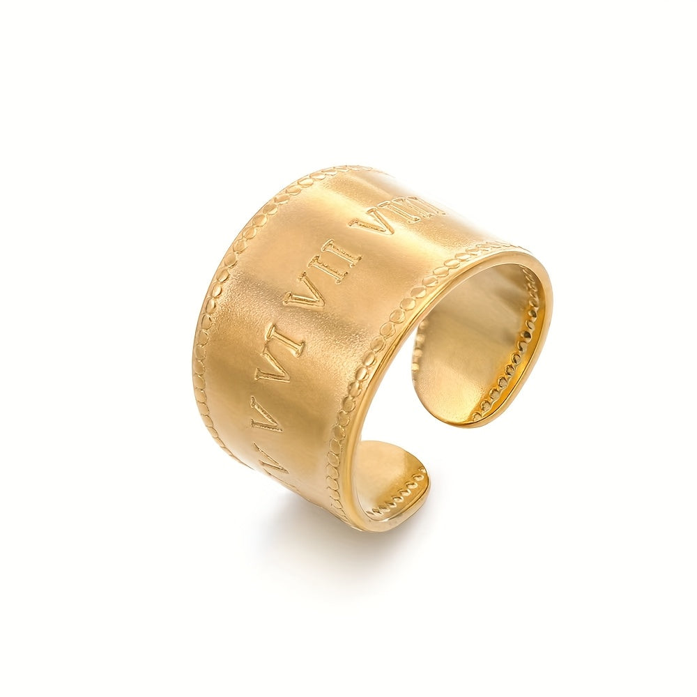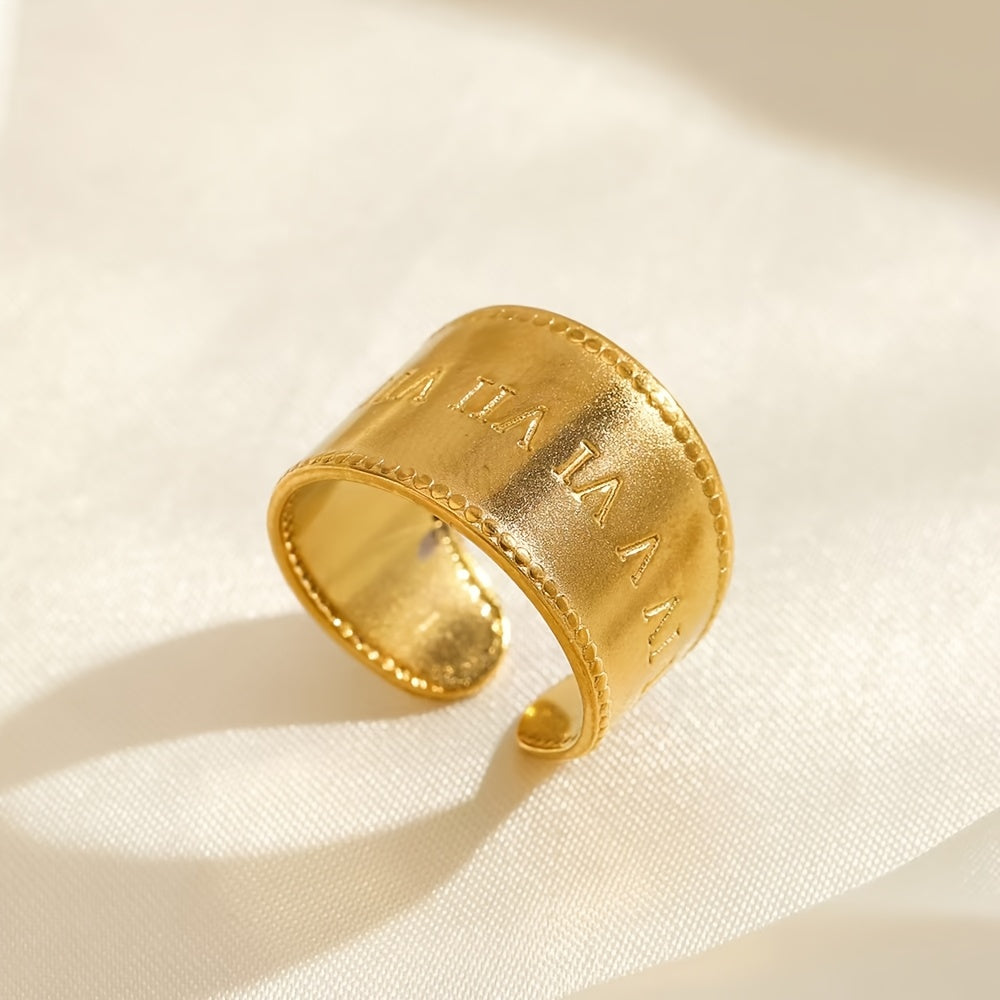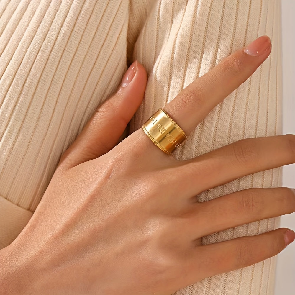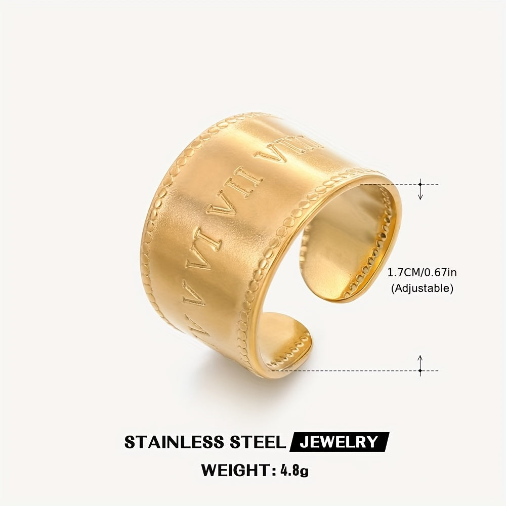This sleek and durable ring is made of tarnish-resistant stainless steel, suitable for both men and women.