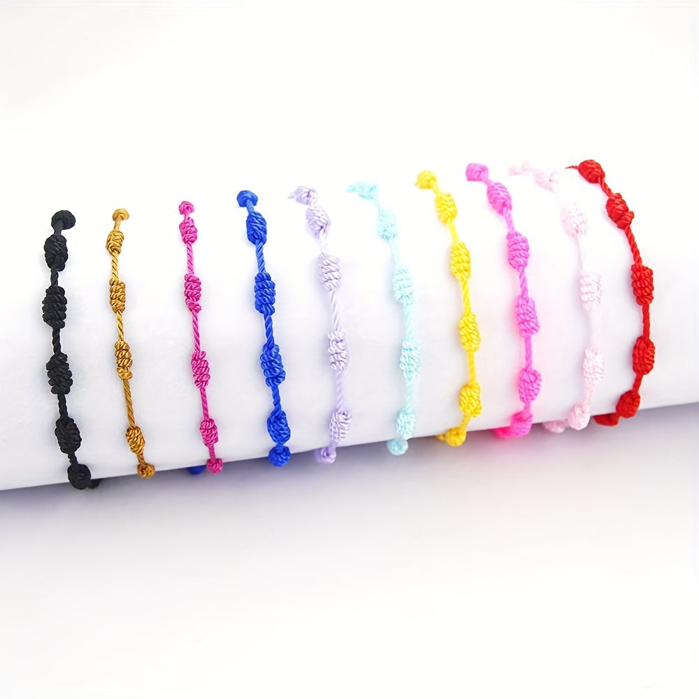 This adjustable bracelet is suitable for both men and women. It features seven knot design and comes in ten different colors. A stylish accessory for any outfit.