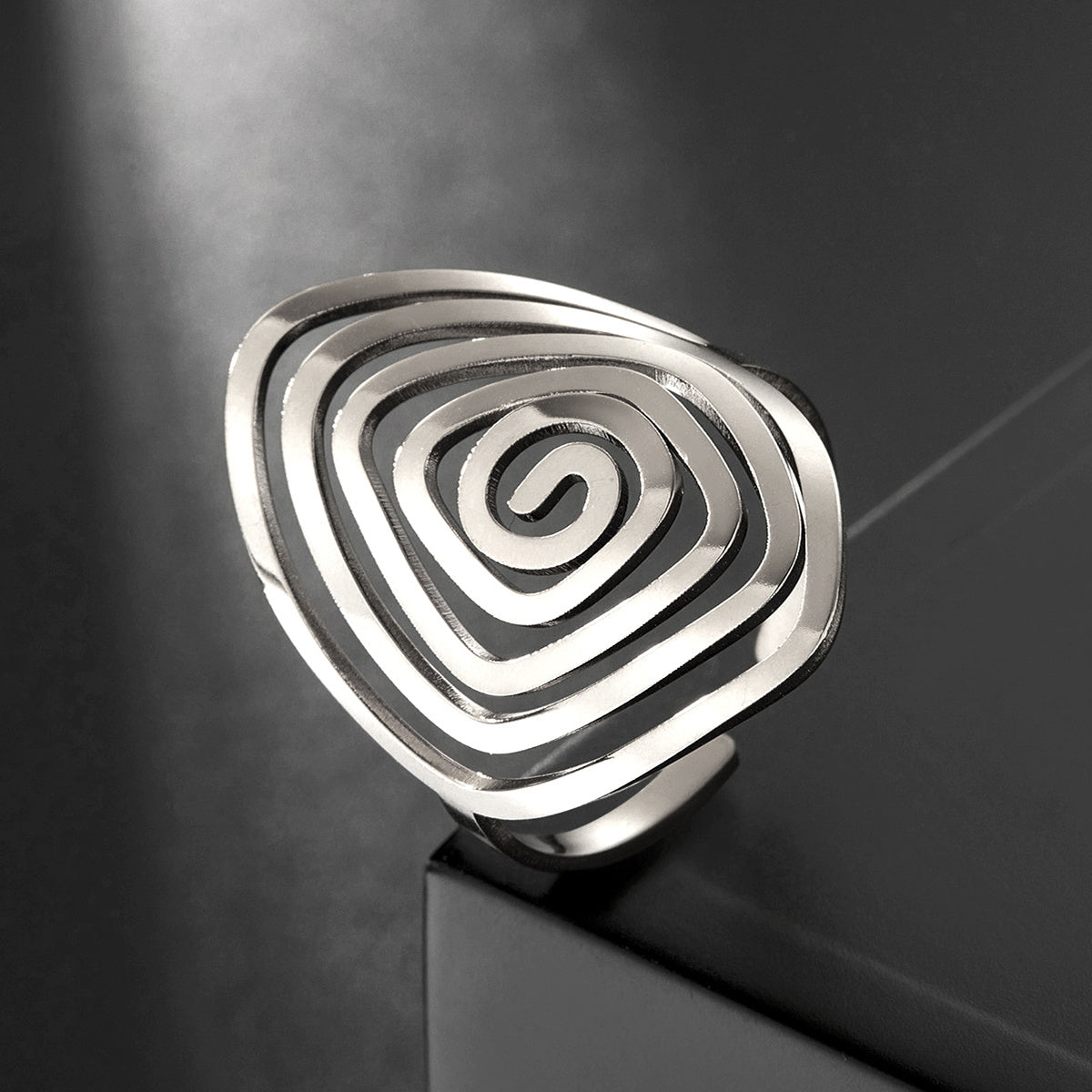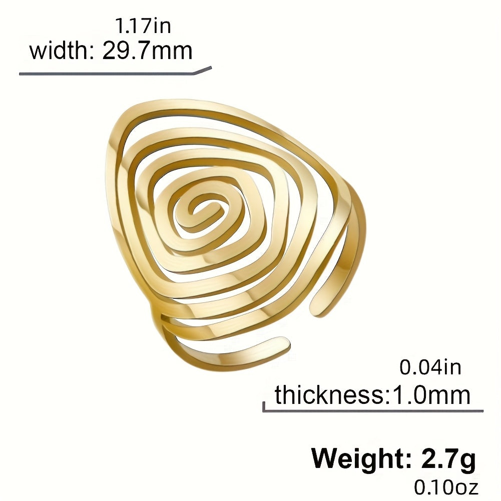 Elevate your style with this unique spiral ring featuring an irregular twist design. Made of high-quality stainless steel, this bohemian piece is customizable and perfect as a birthday gift for women.