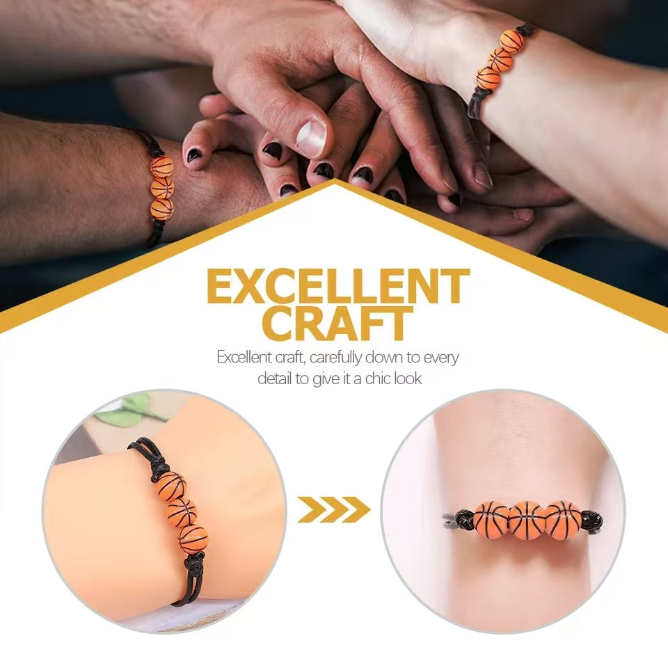 Show your team spirit with this handcrafted sports bracelet featuring team symbol logos. Perfect gift for sports fans who love basketball and football.