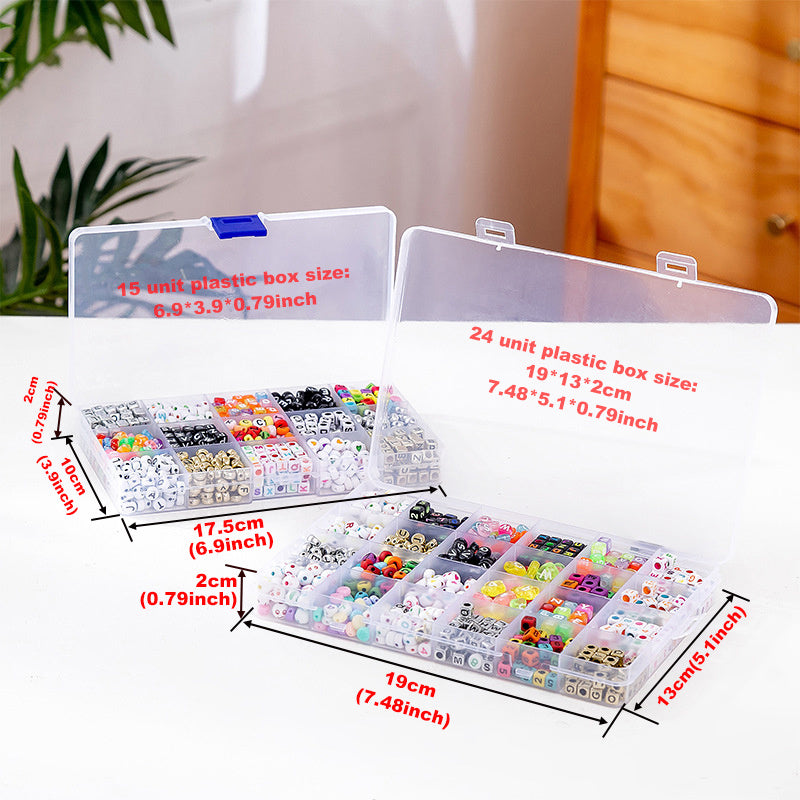 Create your own stylish accessories with this 24 Grid & 15 Grid DIY alphabet beaded set. Perfect for making personalized bracelets, necklaces, and earrings.