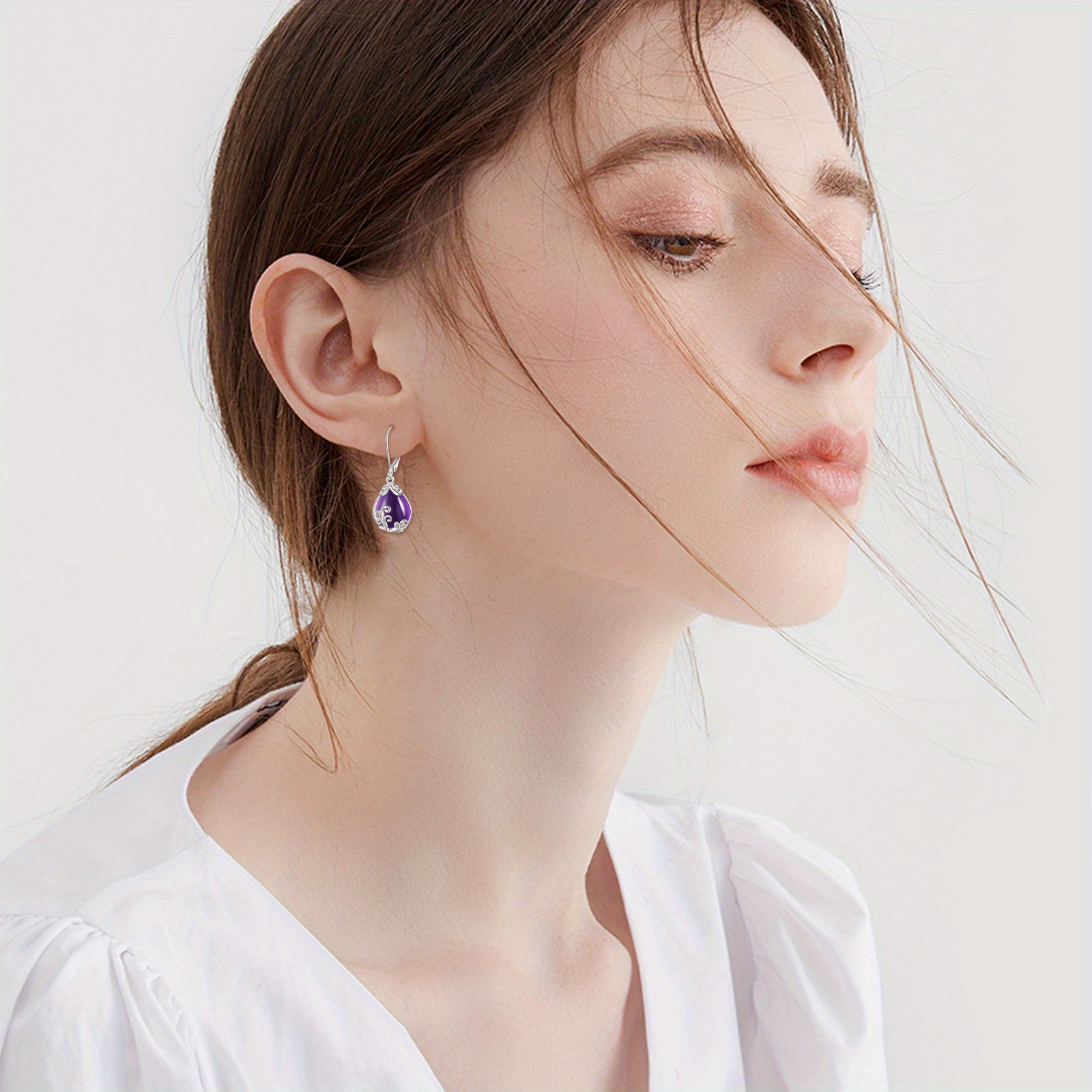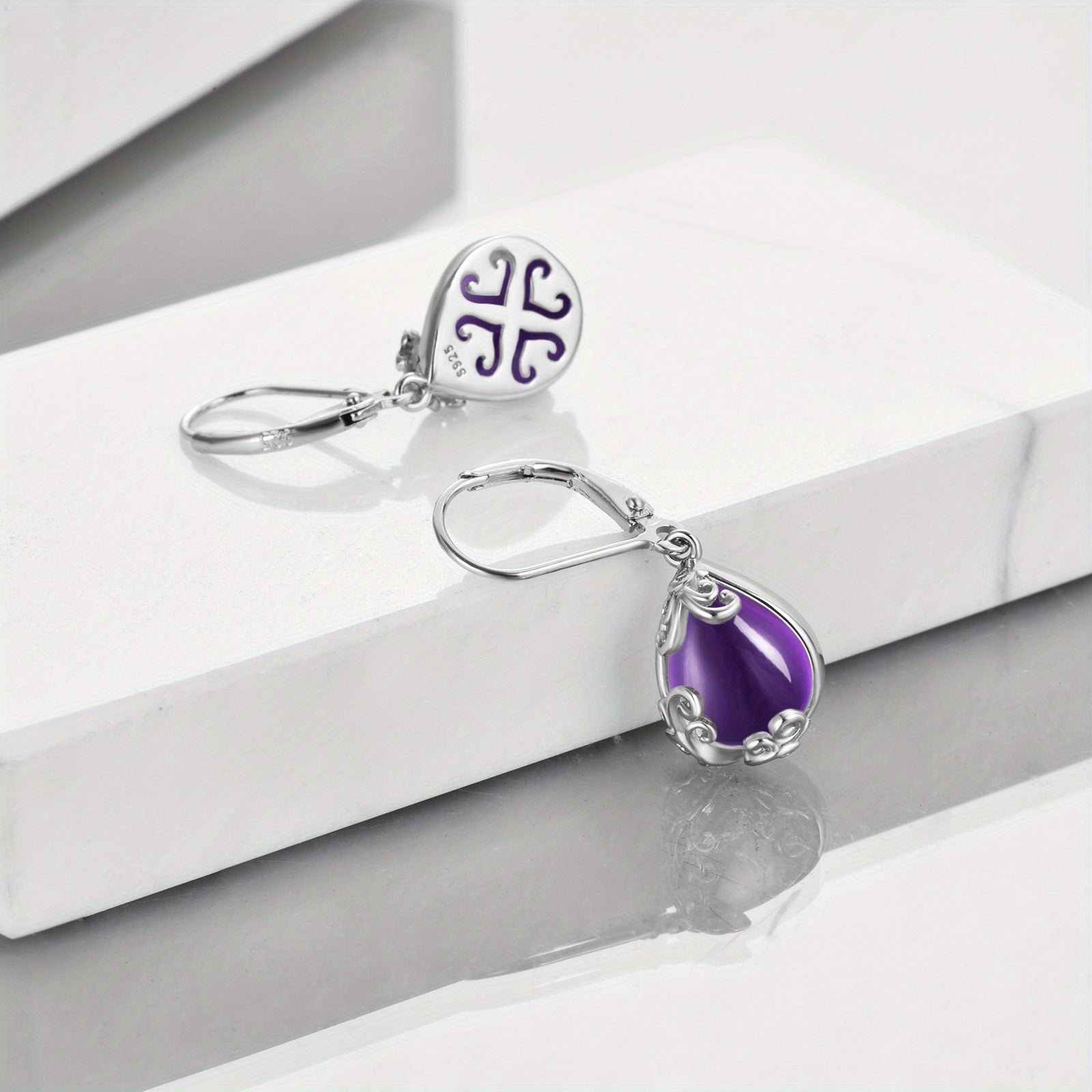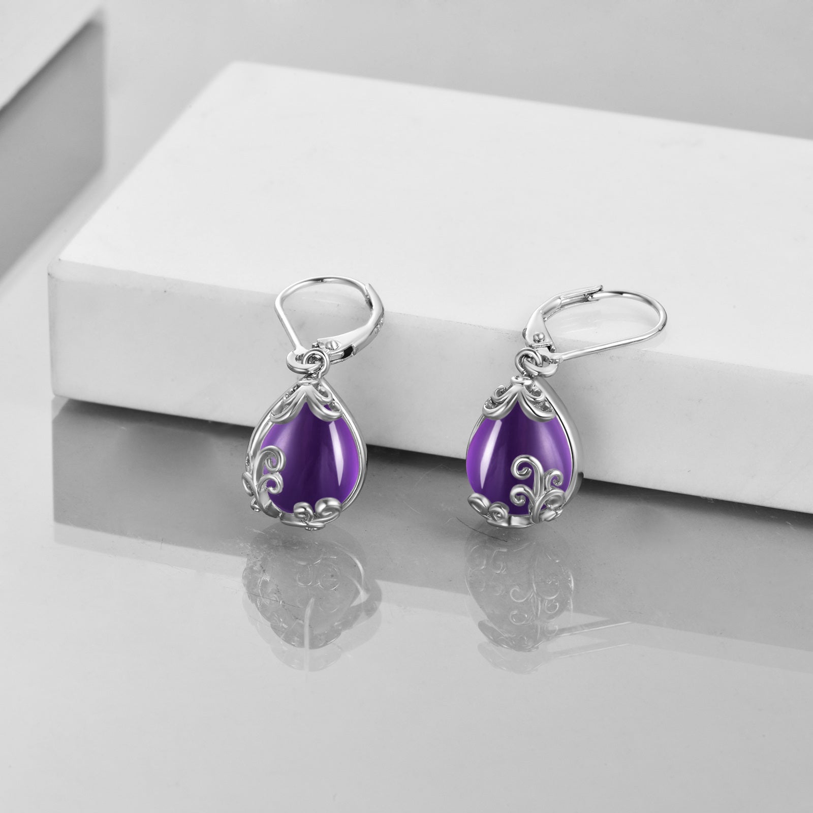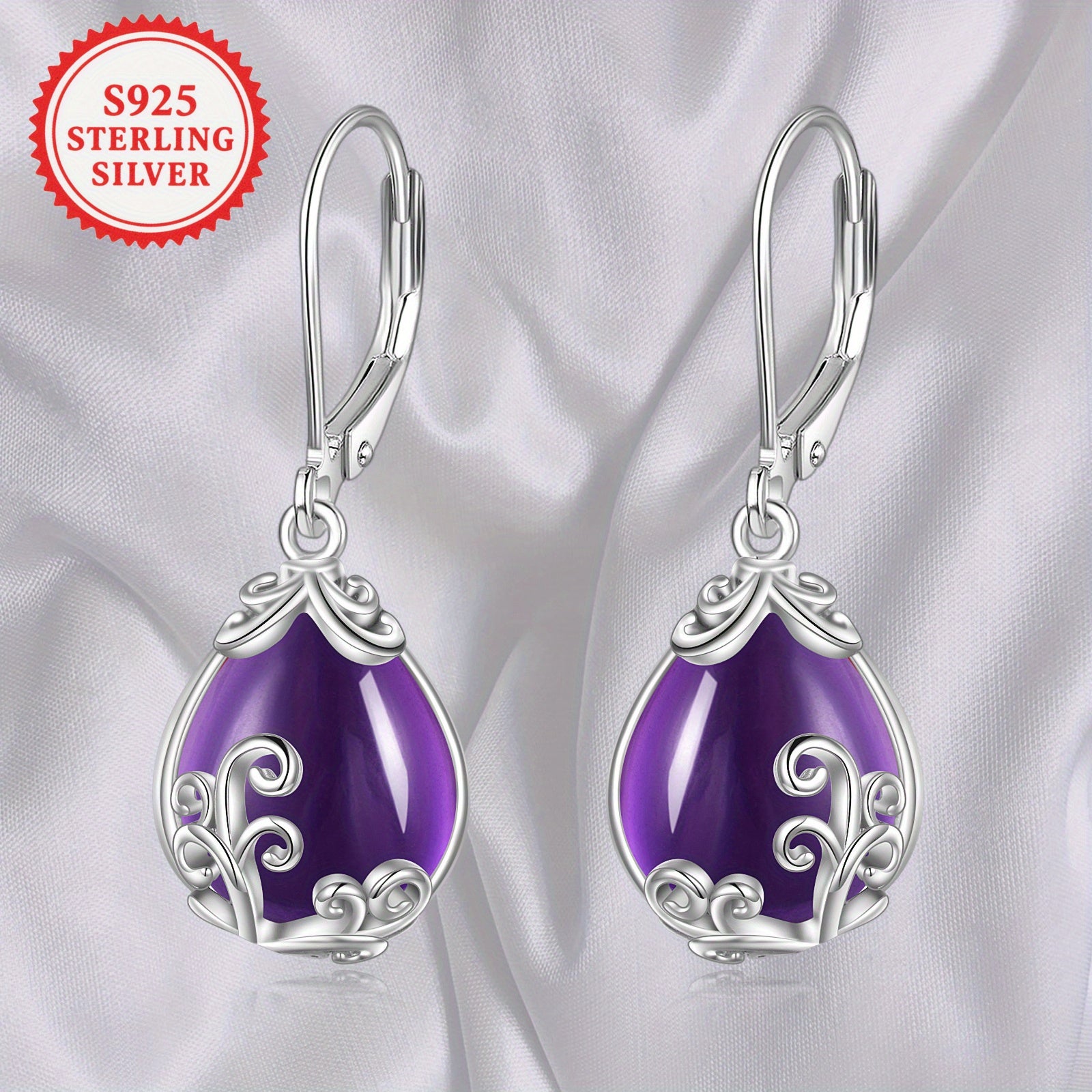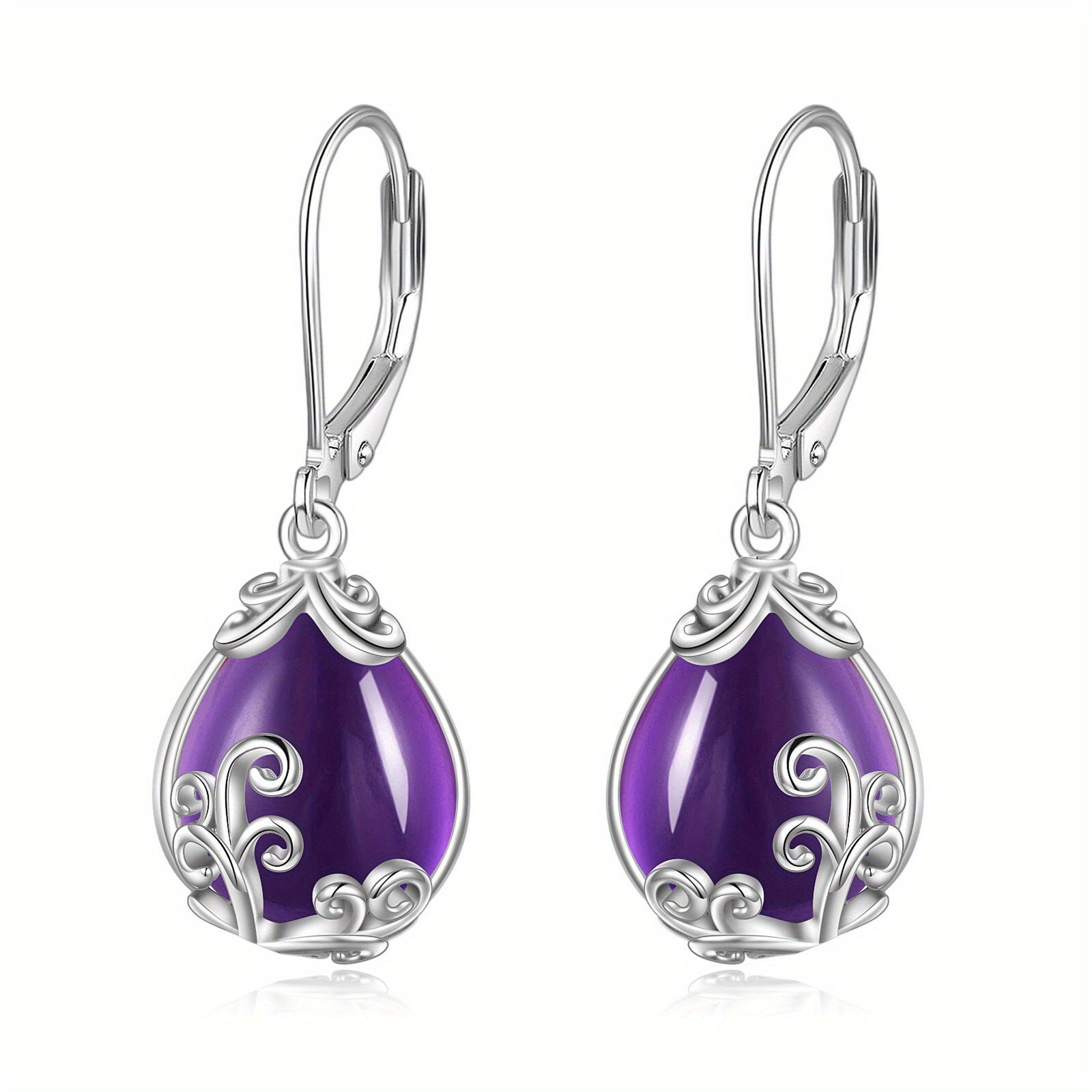 Amethyst Filigree Teardrop Dangle Earrings Sterling Purple Leverback Jewelry