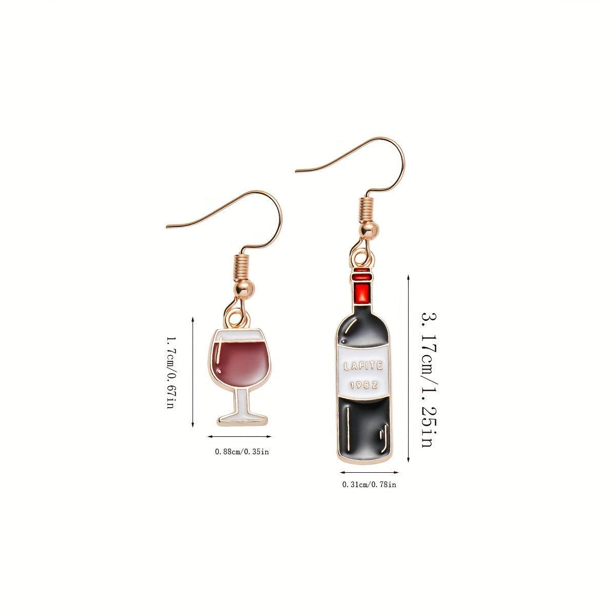 Make a statement with these unique asymmetry red wine bottle cup dangle drop earrings. Perfect for wine lovers and fashionistas!