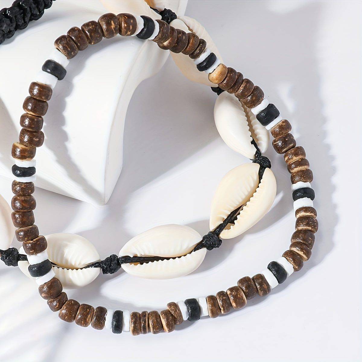 Bohemian Beach Anklet Set with Shell and Wooden Beads
