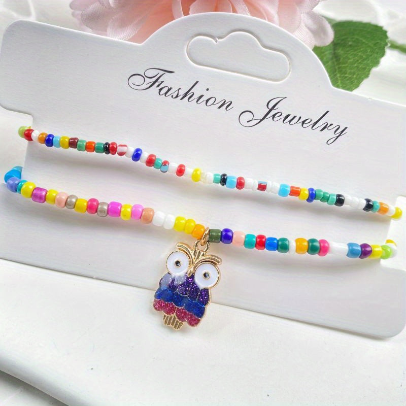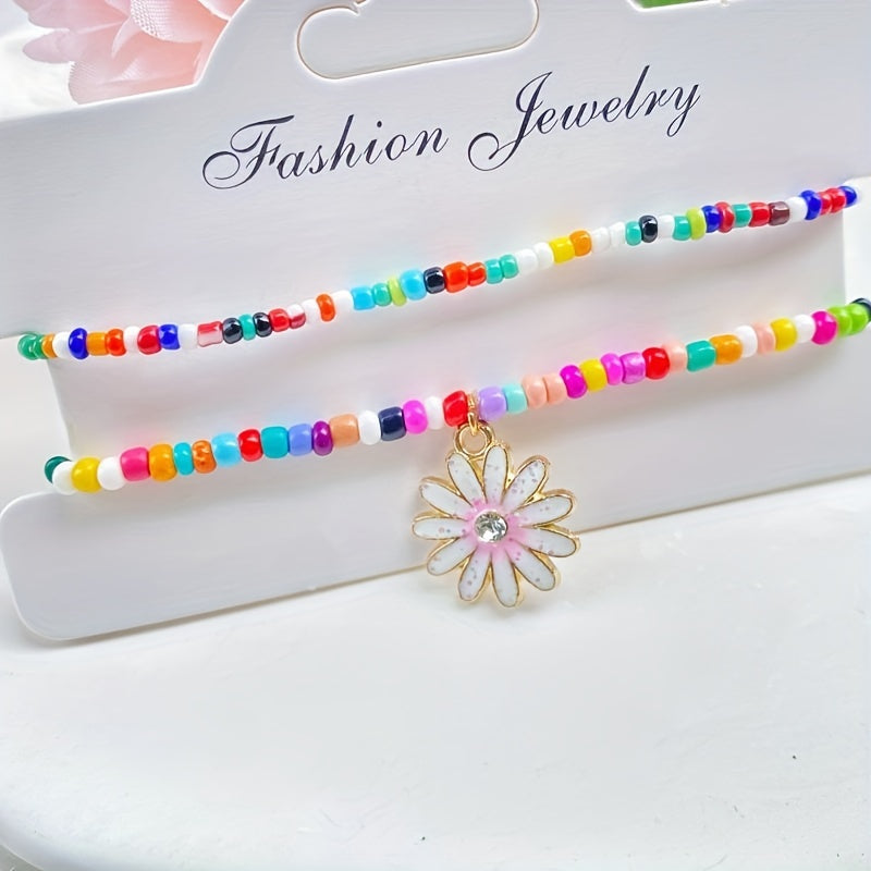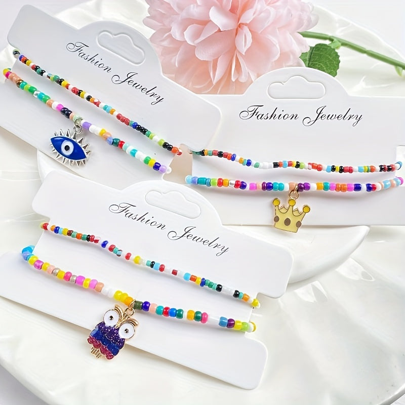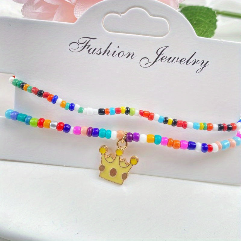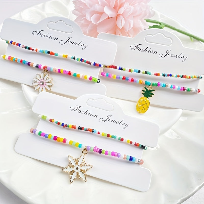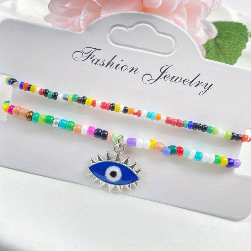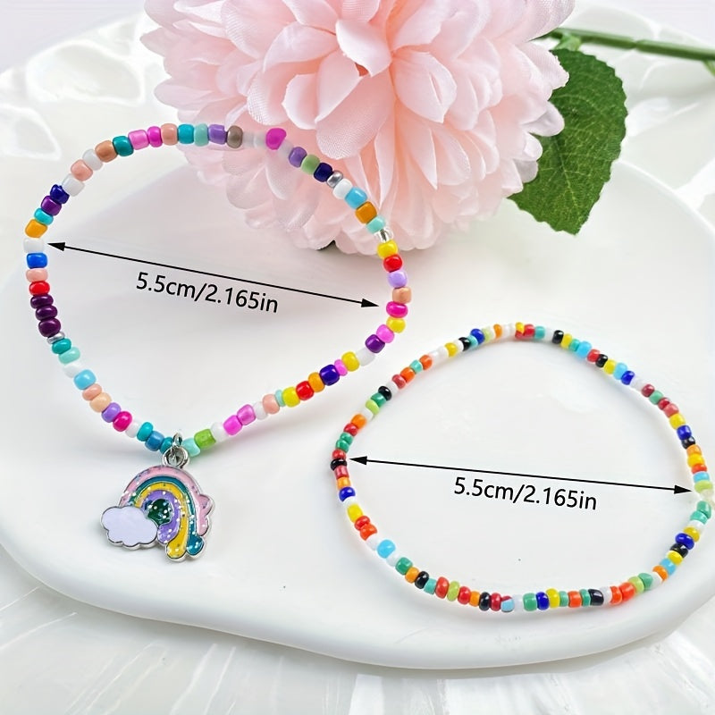 Create your own Bohemian style with this set of 2 ankle bracelets featuring colorful rice beads. Perfect for DIY jewelry projects or to add a vibrant touch to your look.