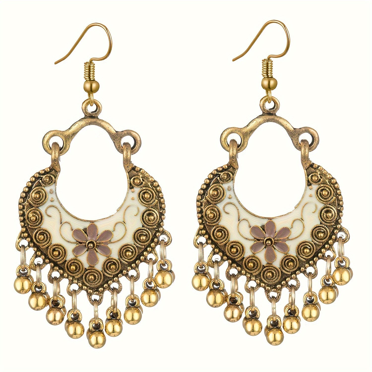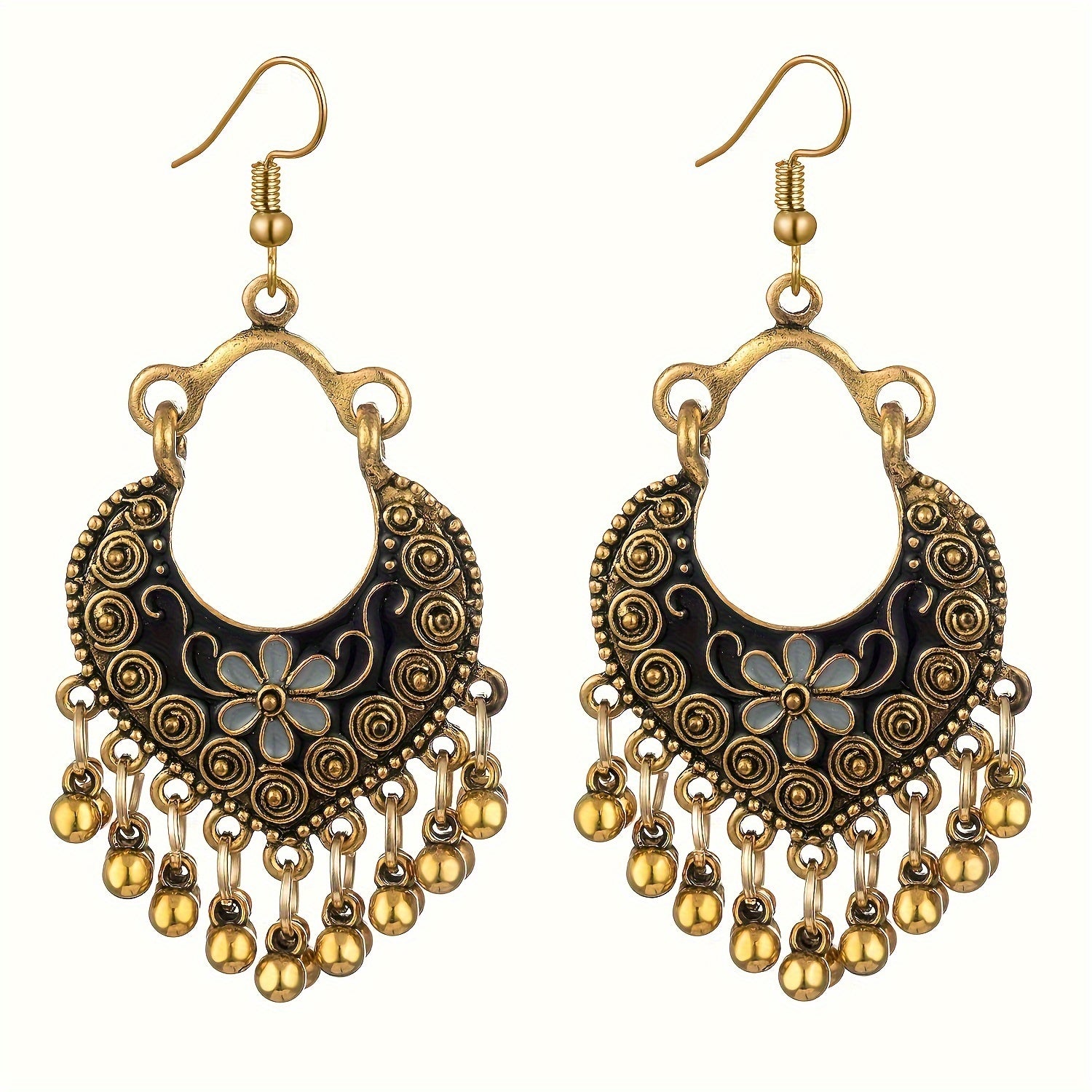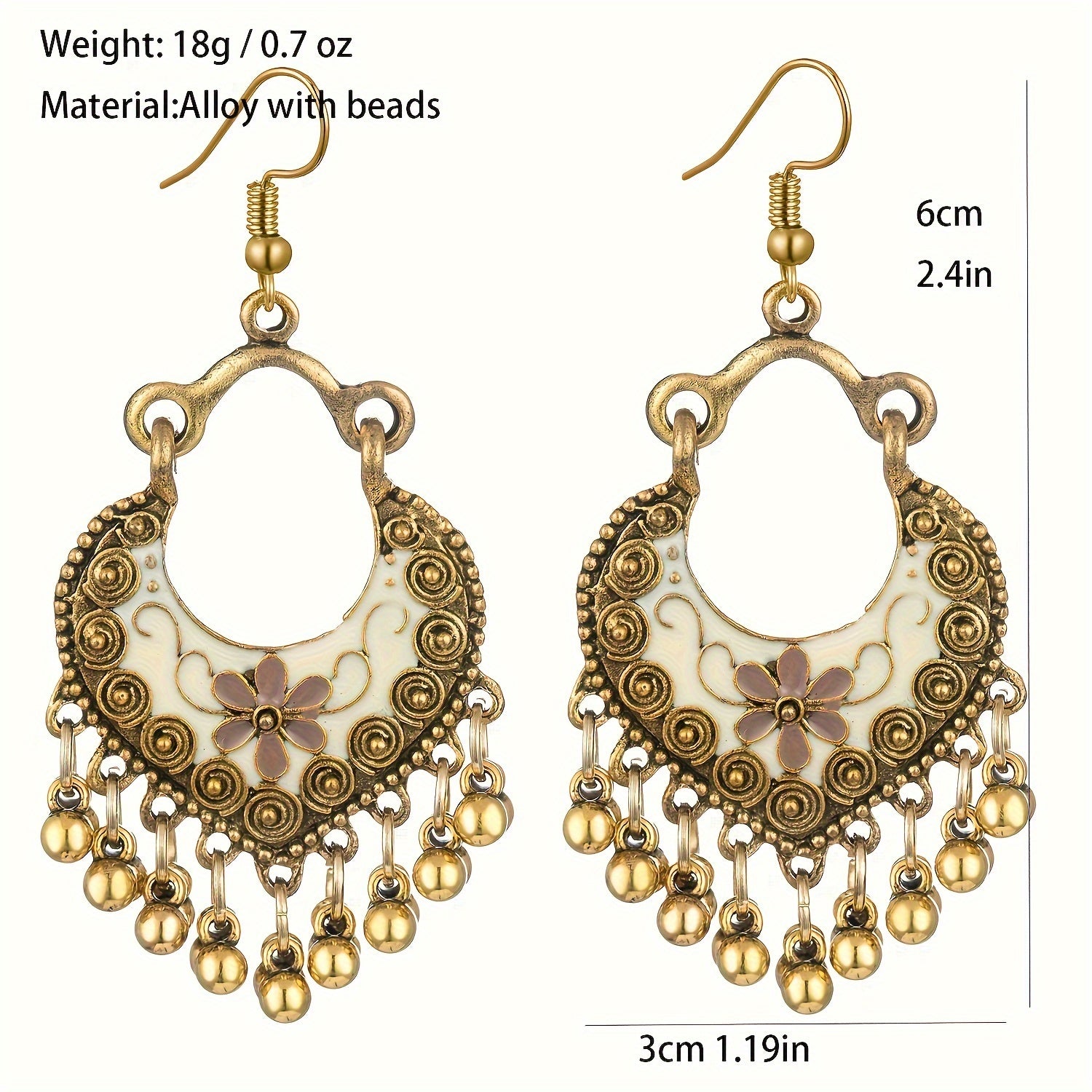 Upgrade your style with these bohemian-inspired tassel bead earrings in antique gold. Made of stainless steel, these earrings are perfect for adding a touch of ethnic flair to any outfit.