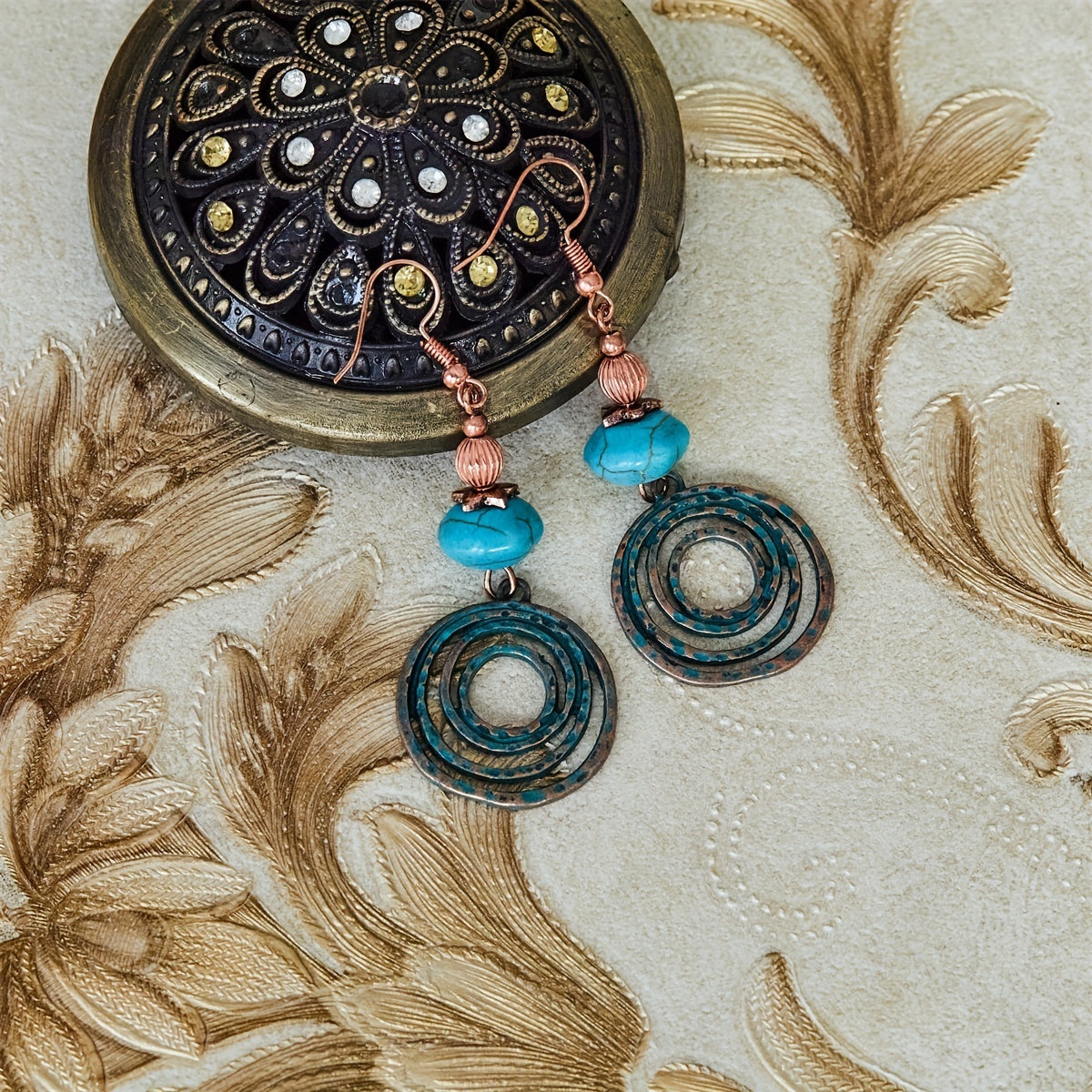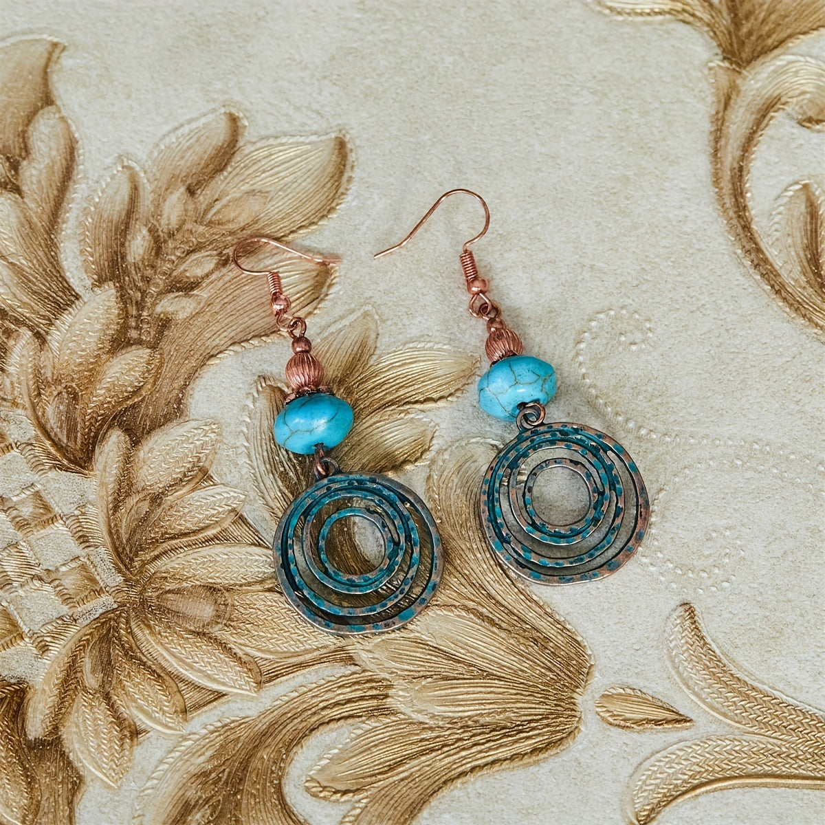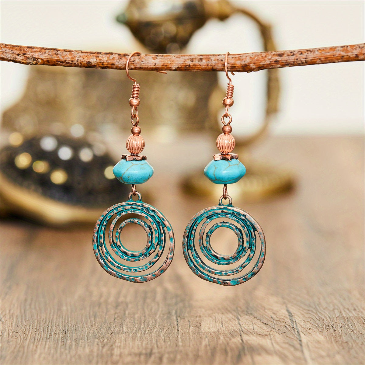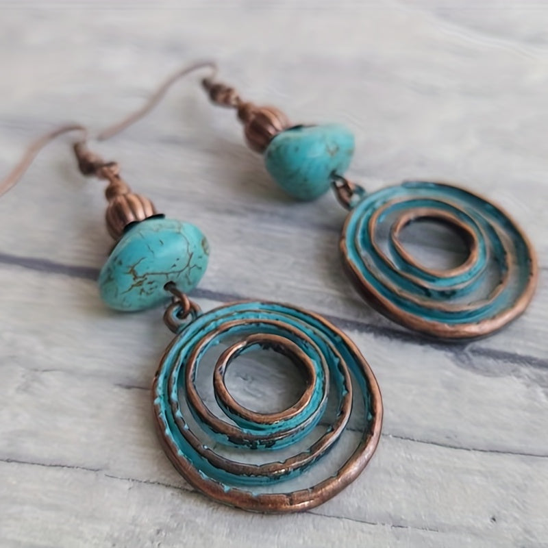 Add a touch of bohemian style to your look with these geometric round drop earrings. Perfect for parties or as a gift for a fashionable man.