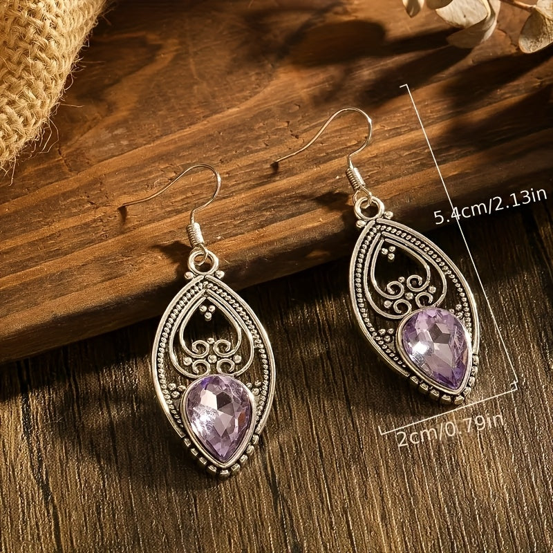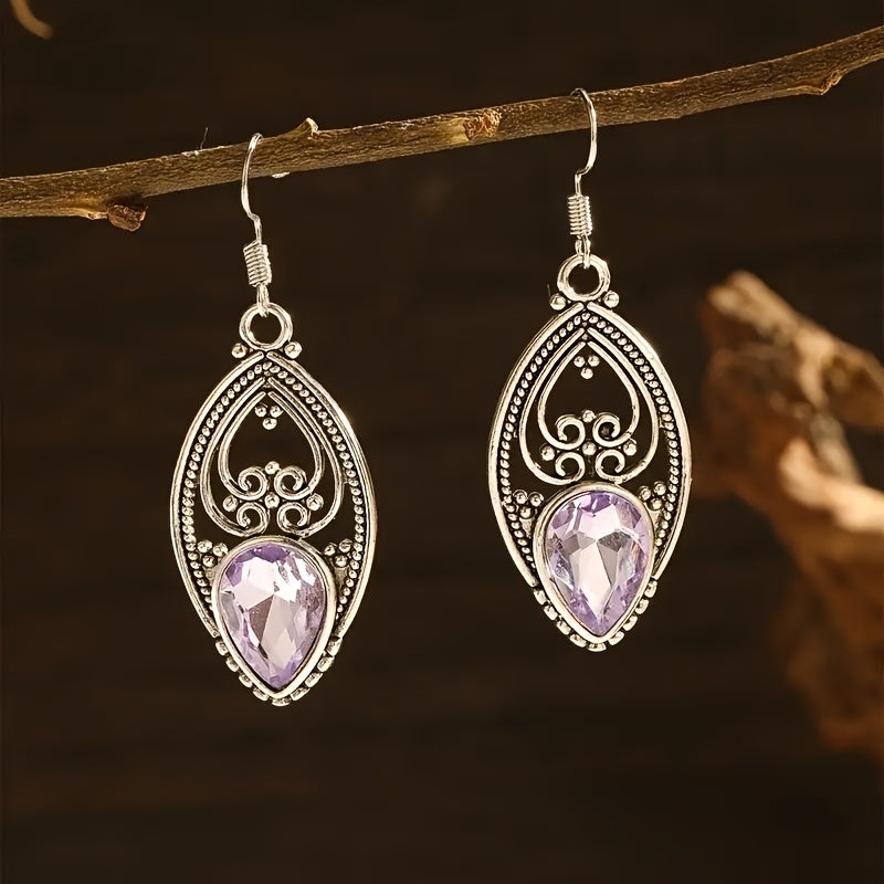 Bohemian Purple Gemstone Teardrop Earrings Copper Plated