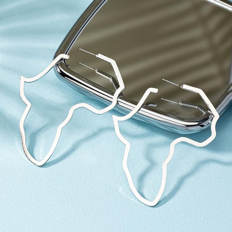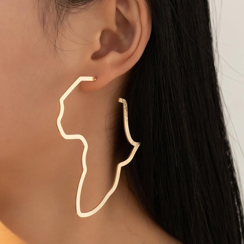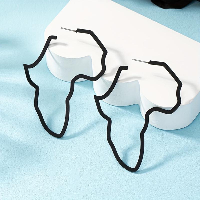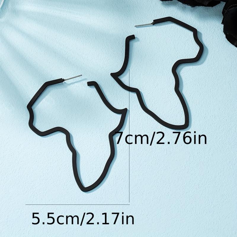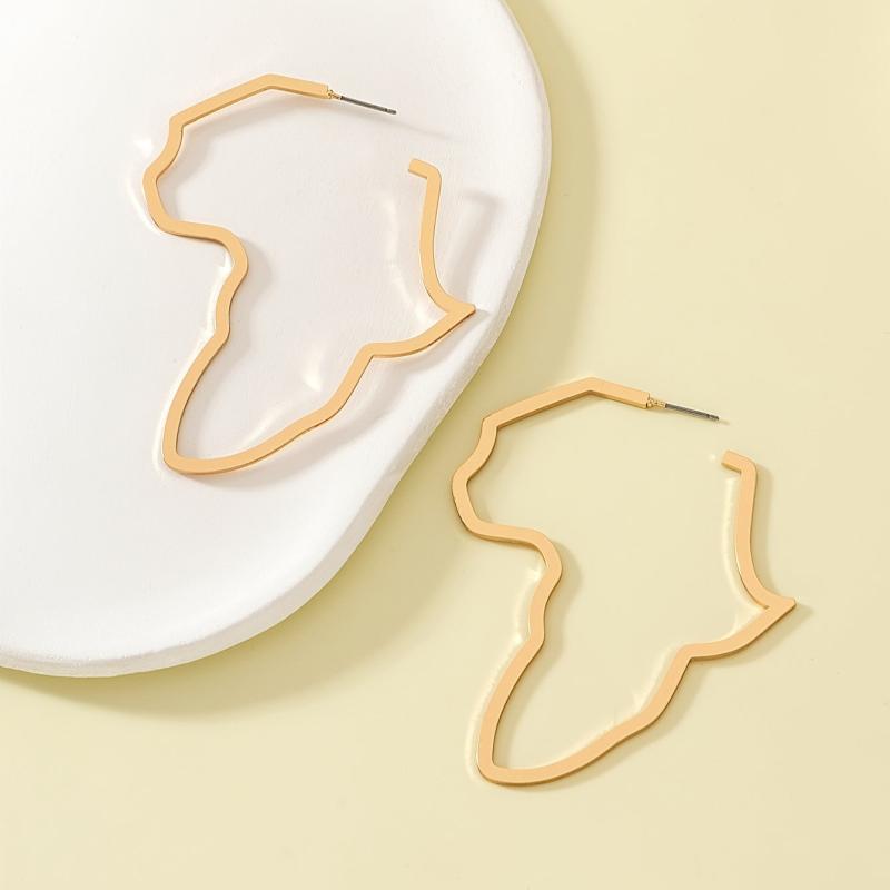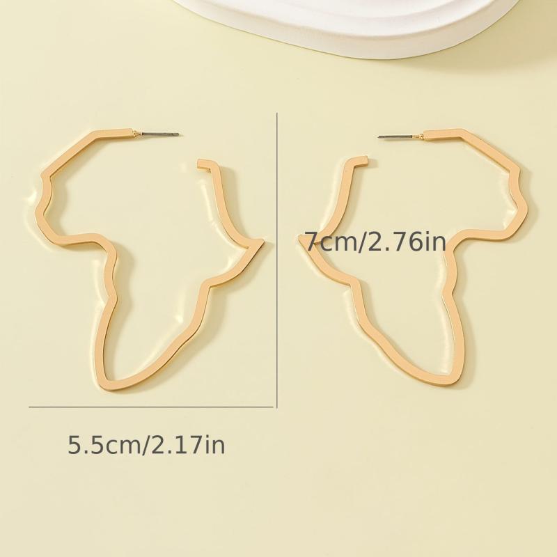 Embrace your unique style with these hollow hoop earrings featuring an African map design. Crafted from iron with 18K gold plating, these earrings add a touch of personality to your look.