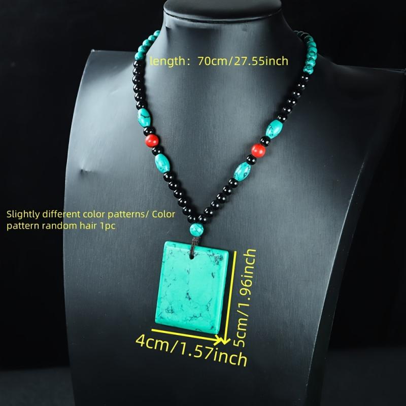 Add a touch of ethnic charm with this natural turquoise pendant necklace featuring red accents. Ideal holiday gift for men and women.