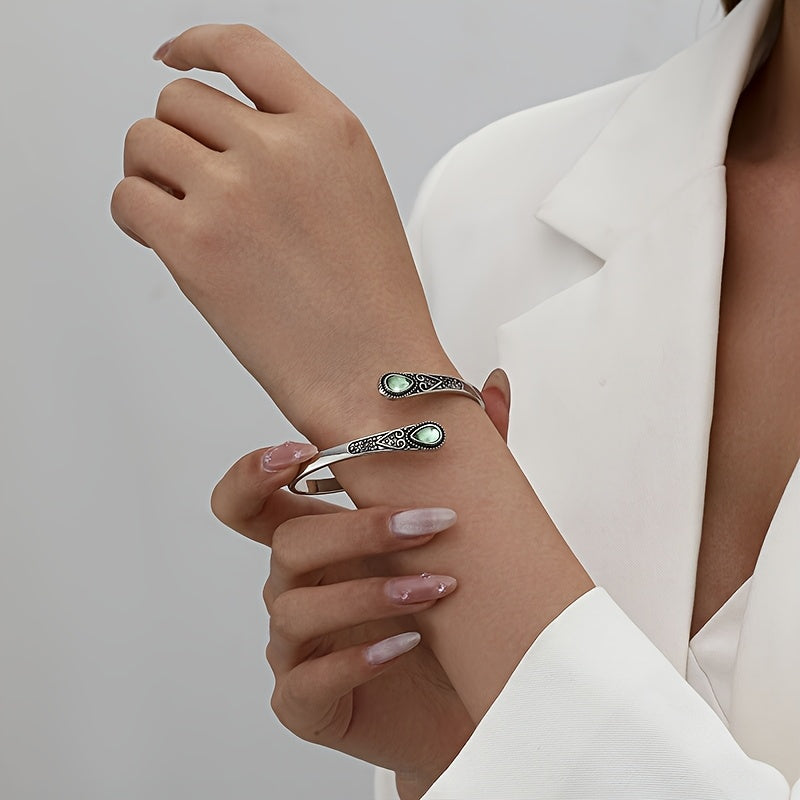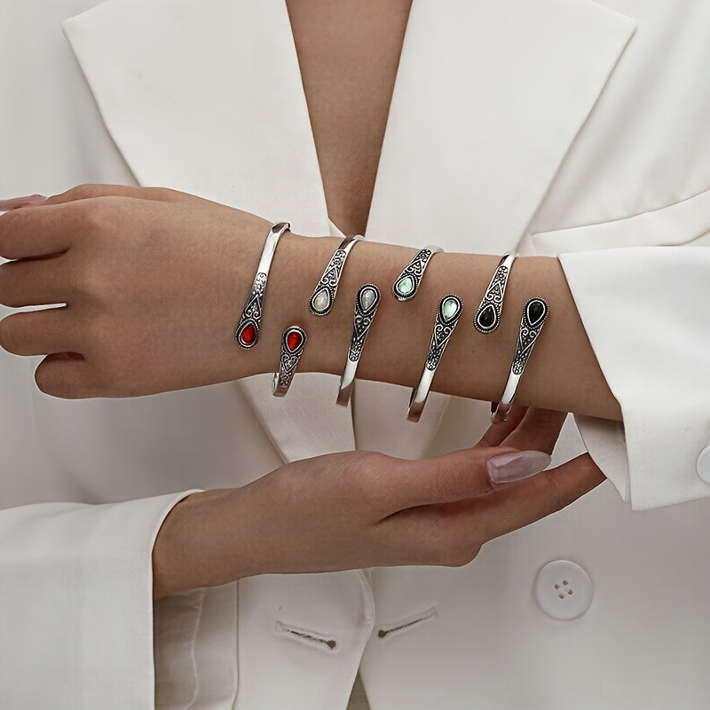 Boho Adjustable Cuff Bracelet with Synthetic Gem Inlay