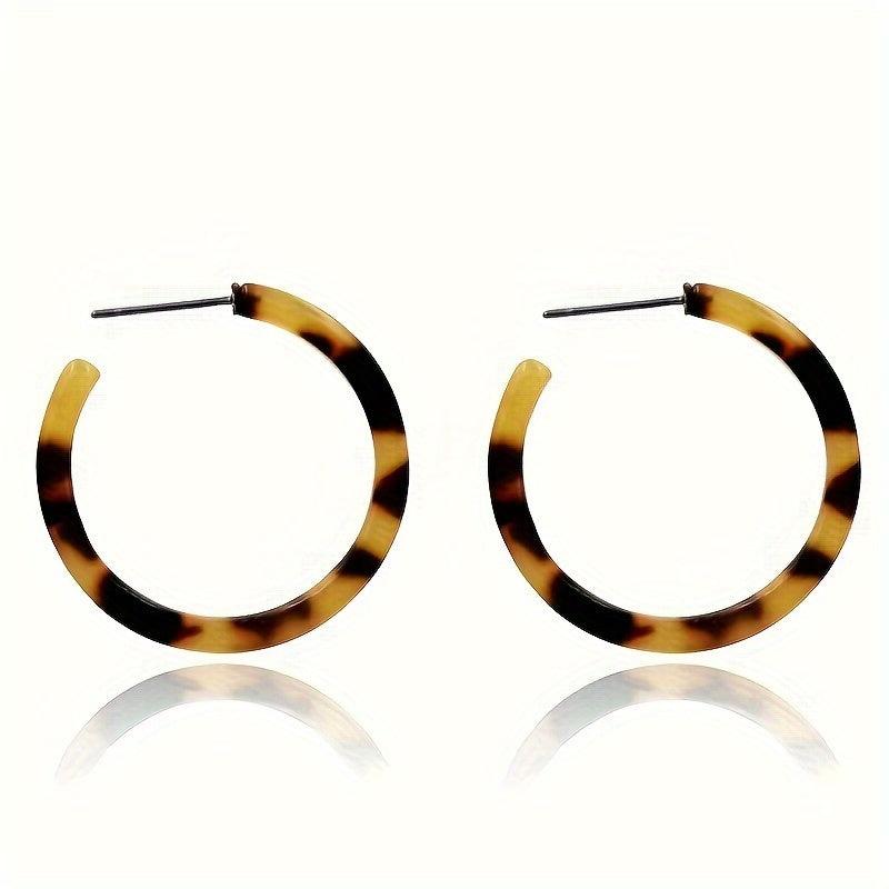 Boho Leopard Print C Hoop Earrings Acrylic & Acetate for Casual Wear or Gifting